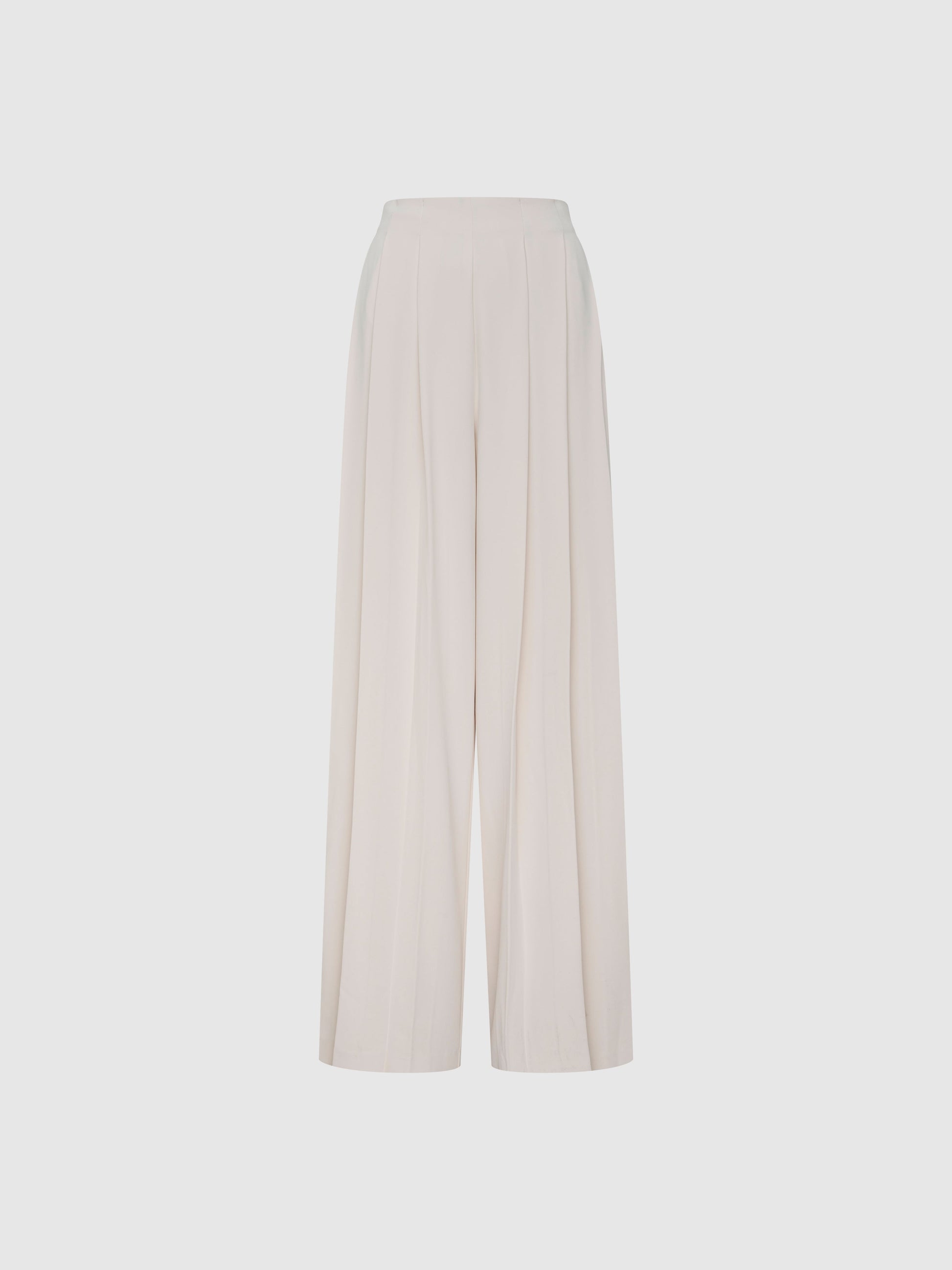 Effortlessly Elevated. Introducing the Adele Pant featuring an ivory woven fabrication, wide leg design, fixed waistband with inverted pleats and side seam zipper. Pair with our Kaia Top or Grace Shirt to complete the look!