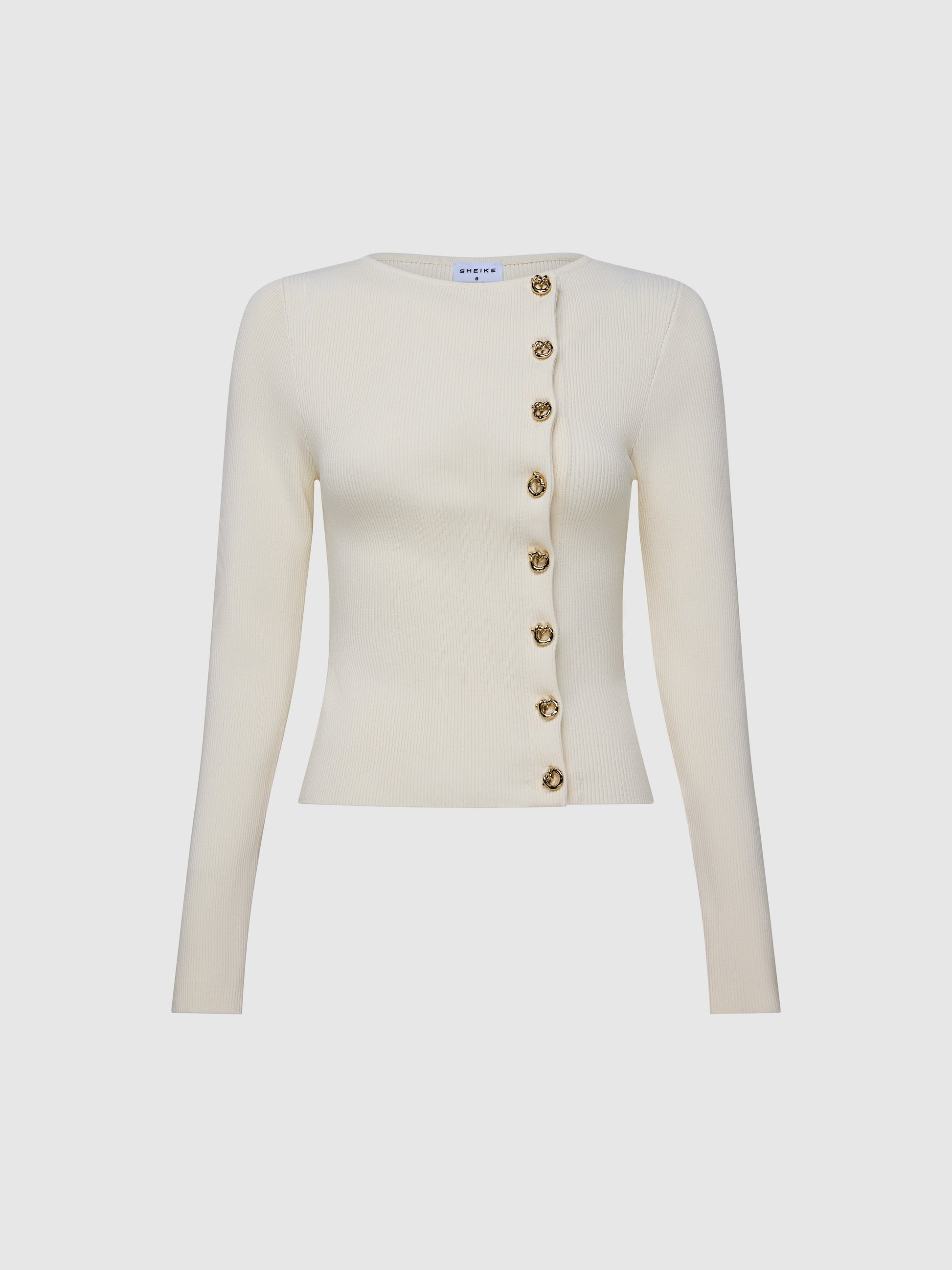 Neutral tones meet effortless styling - Introducing the Adora Knit Top, showcasing an ivory ribbed knit fabrication, fitted cut, off centre buttons, long sleeves and boat cut neckline. Pair with our Nour Skirt to complete the look.