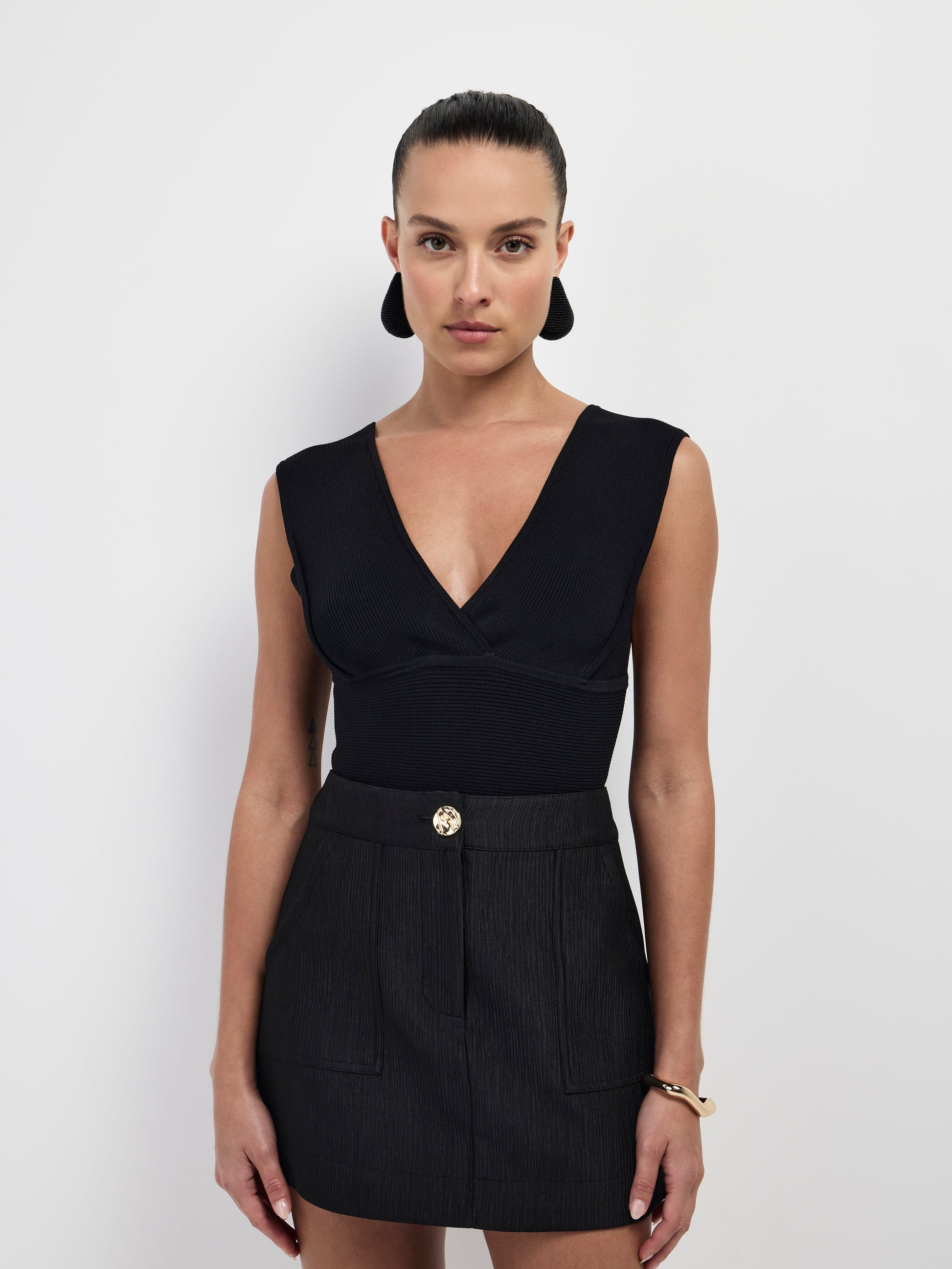 Elevate your wardrobe with the Barcelona Top - showcasing a black stretch knit fabrication and fitted crop cut, this sleek V neck knit offers optimum comfort with an elegant finish. Pair with our Marnie Skort and Issey Earrings to complete the look.