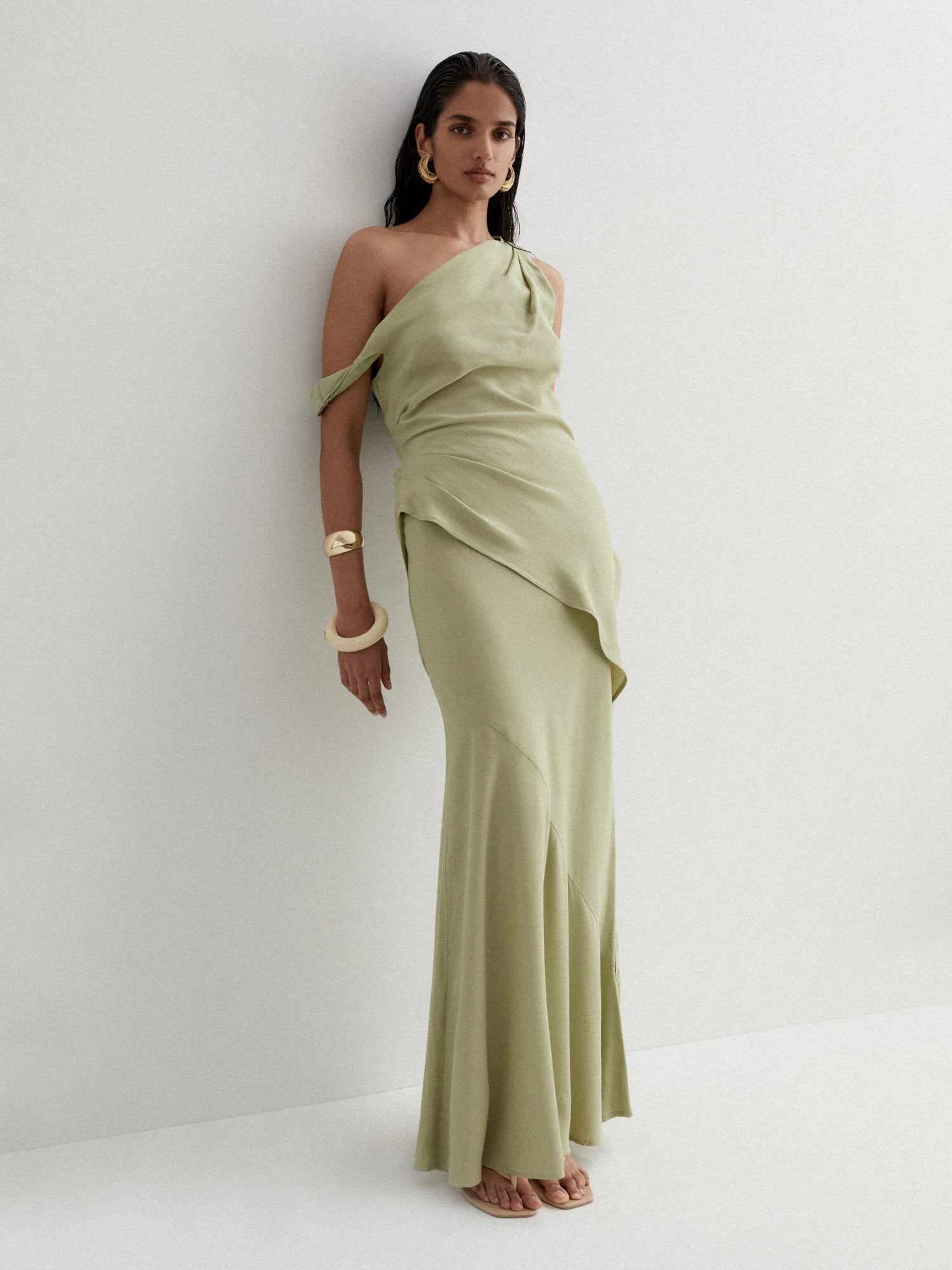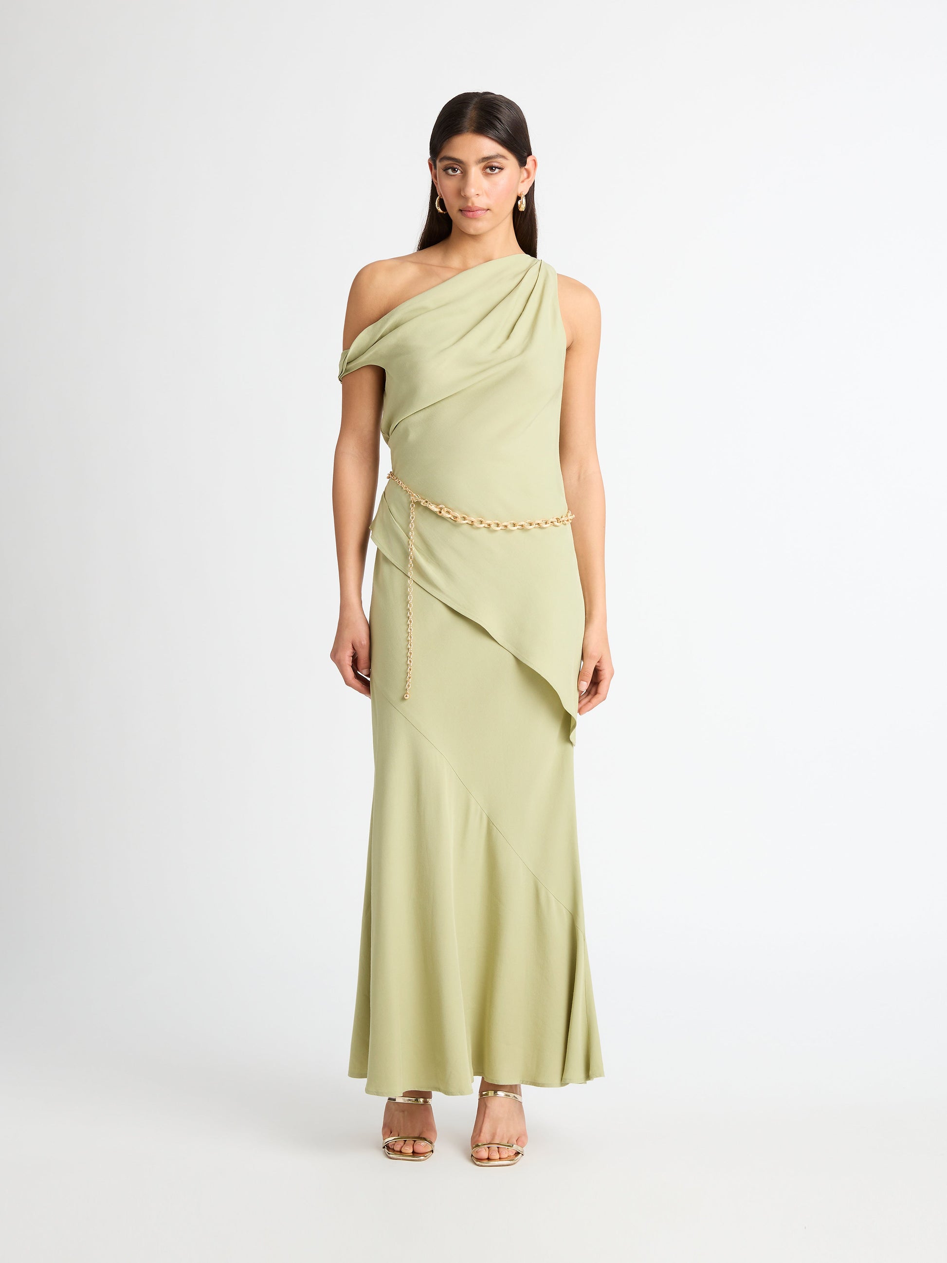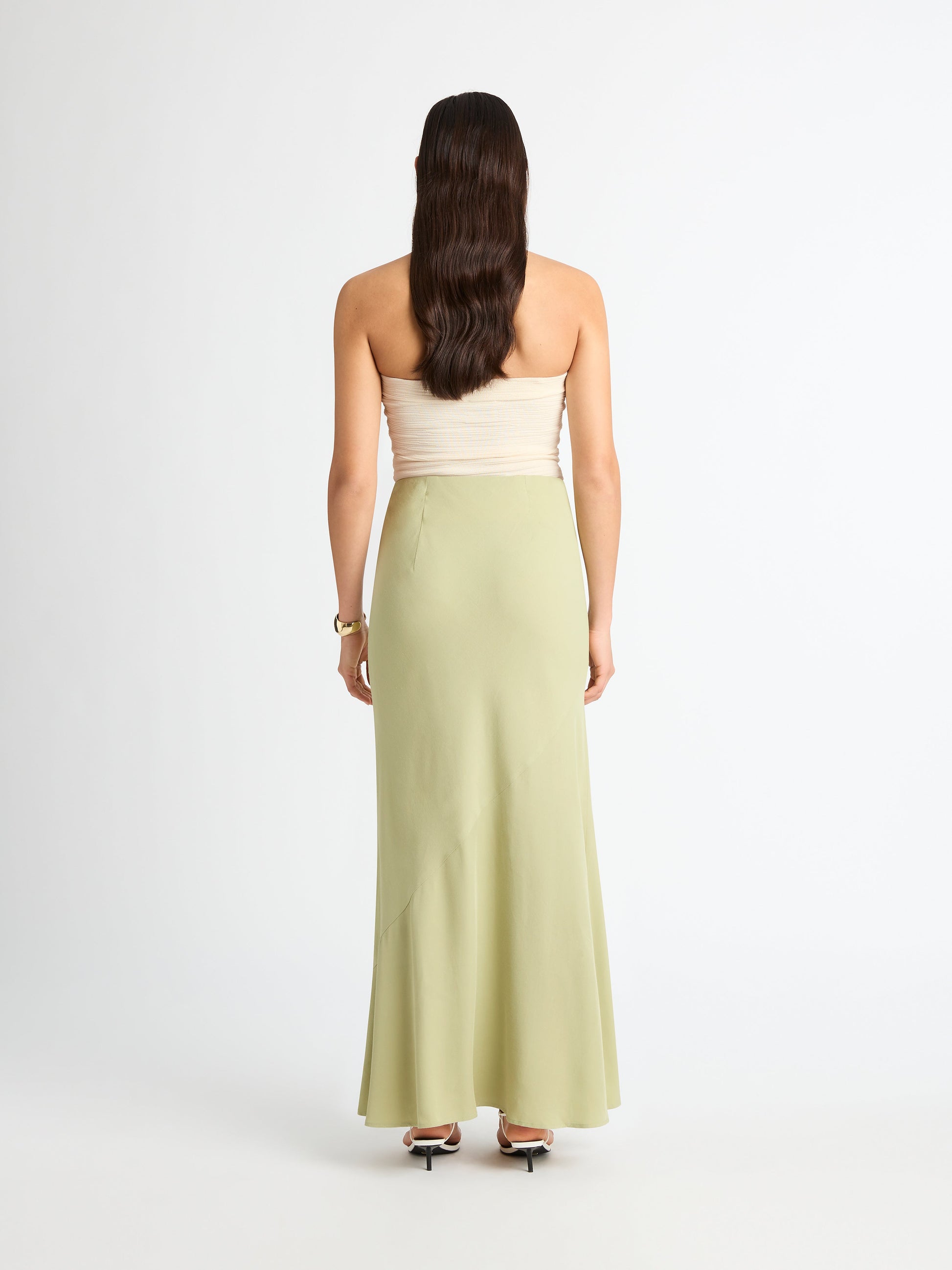 Effortless silhouettes in calming sage tones. Introducing the Bella Maxi Skirt - an elegant woven skirt showcasing a maxi length, elasticated waistband and angled seam detail. Pair with our matching Bella Top to complete the look.
