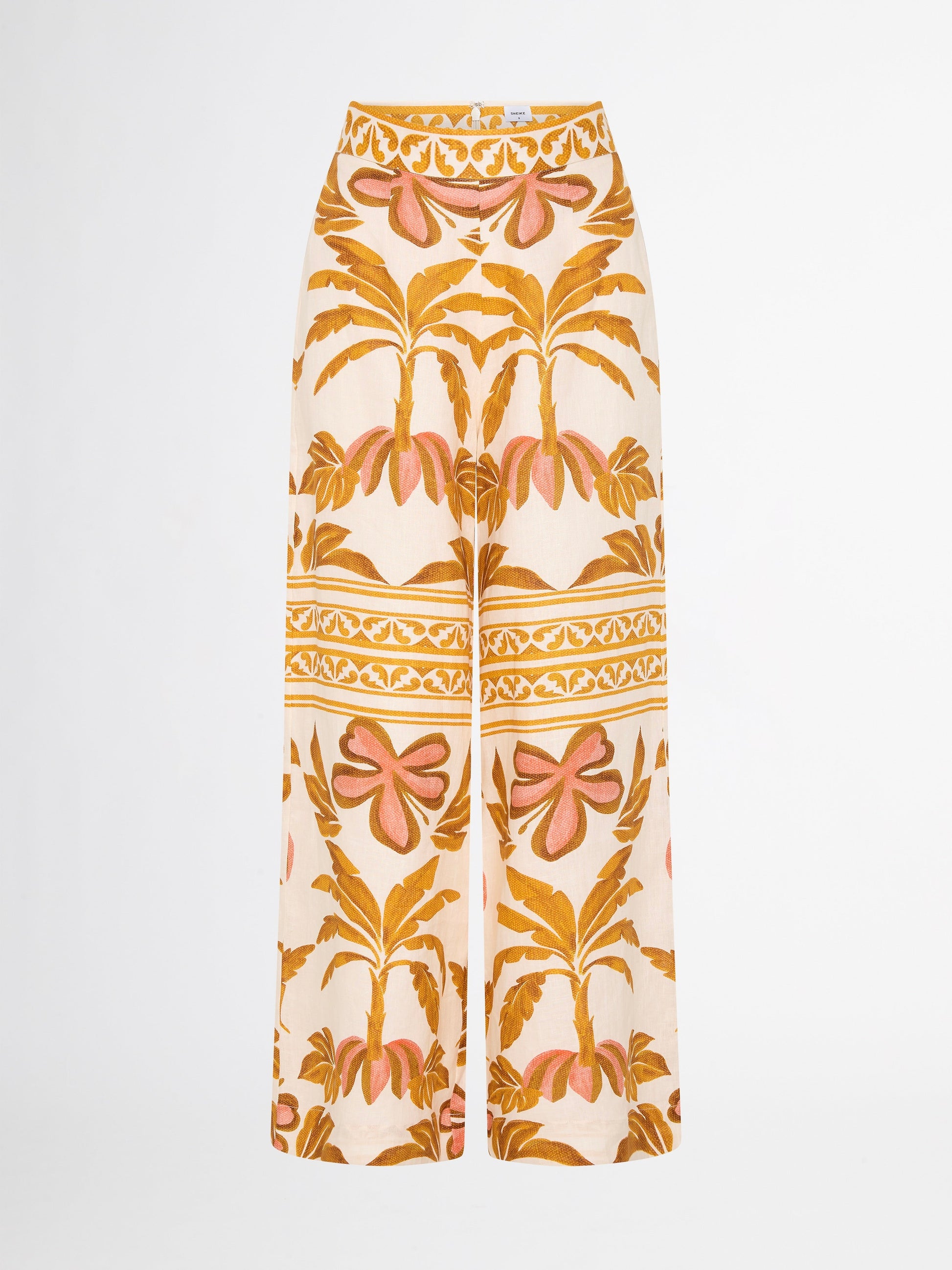 Add a touch of summer to your wardrobe with the Carmelita Pants. Showcasing a lux printed linen fabrication, relaxed fit, fully lined, back invisible zip, and full length wide leg. Pair with our matching Carmelita Shirt or Clement Knit Top to complete the look.