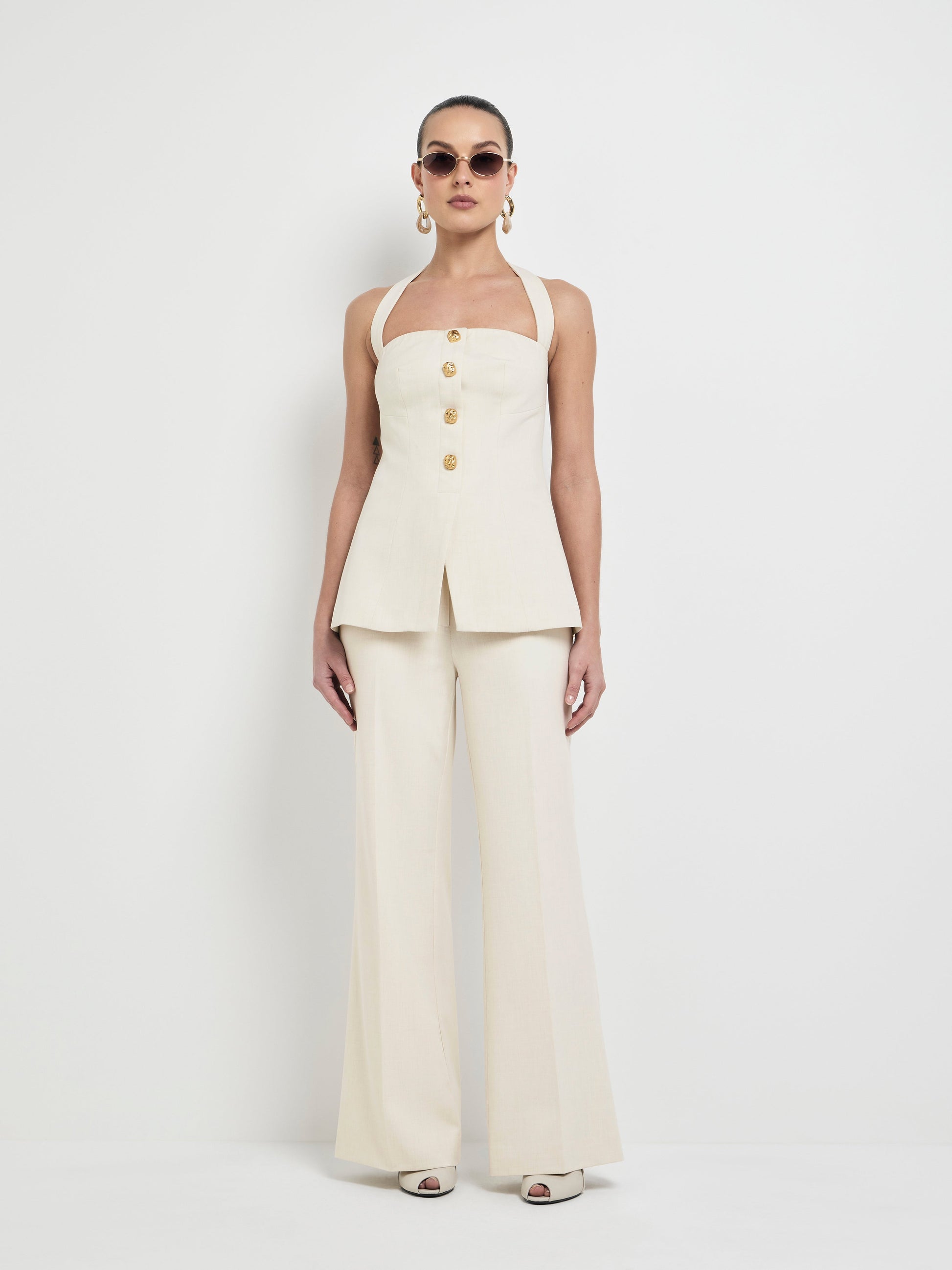 A wardrobe essential. Meet the Carmen Pant, crafted from a soft woven fabric with slight stretch, featuring a high waistband, zip fly closure, full lining, and a sleek fitted shape with a subtle flare. Pair it with our matching Carmen Top for a polished head-to-toe look.