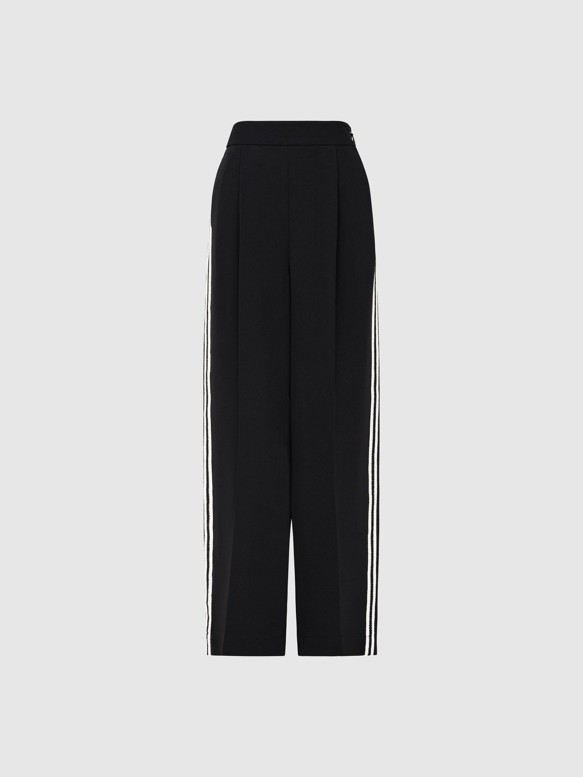 - Tuck detail at front with press pleats down front leg