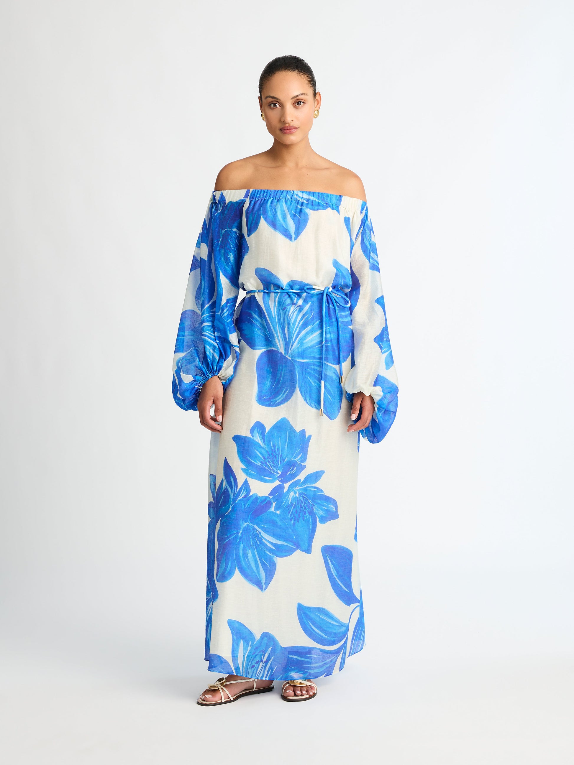 Step into paradise with the Coastal Bloom Maxi Dress. Featuring a floral linen blend sheer fabrication, relaxed oversized fit with elasticated neckline, rouleau tie belt, long sleeves with elasticated cuffs and maxi length skirt. Pair with our Oceanic Earrings to complete the look.
