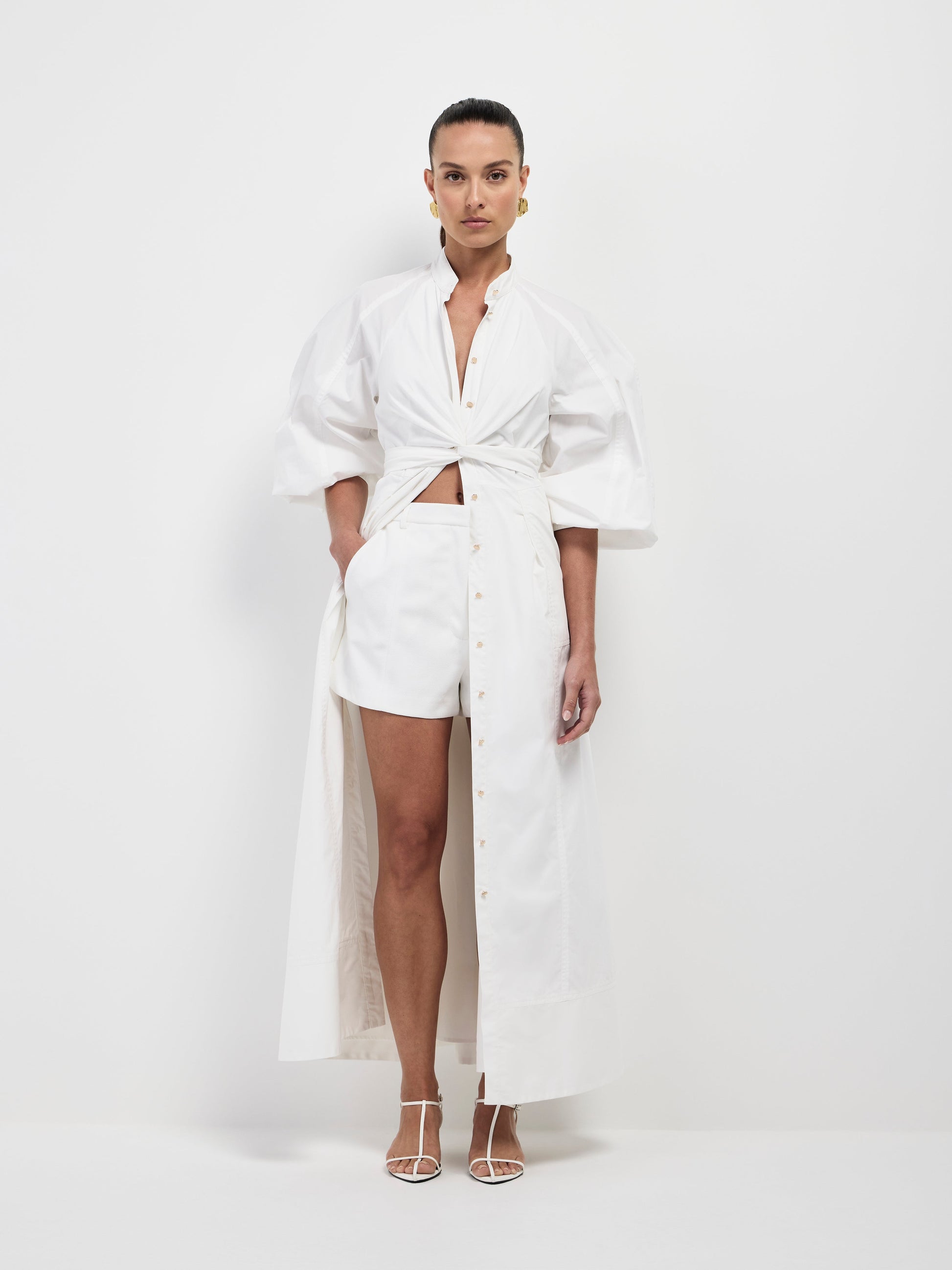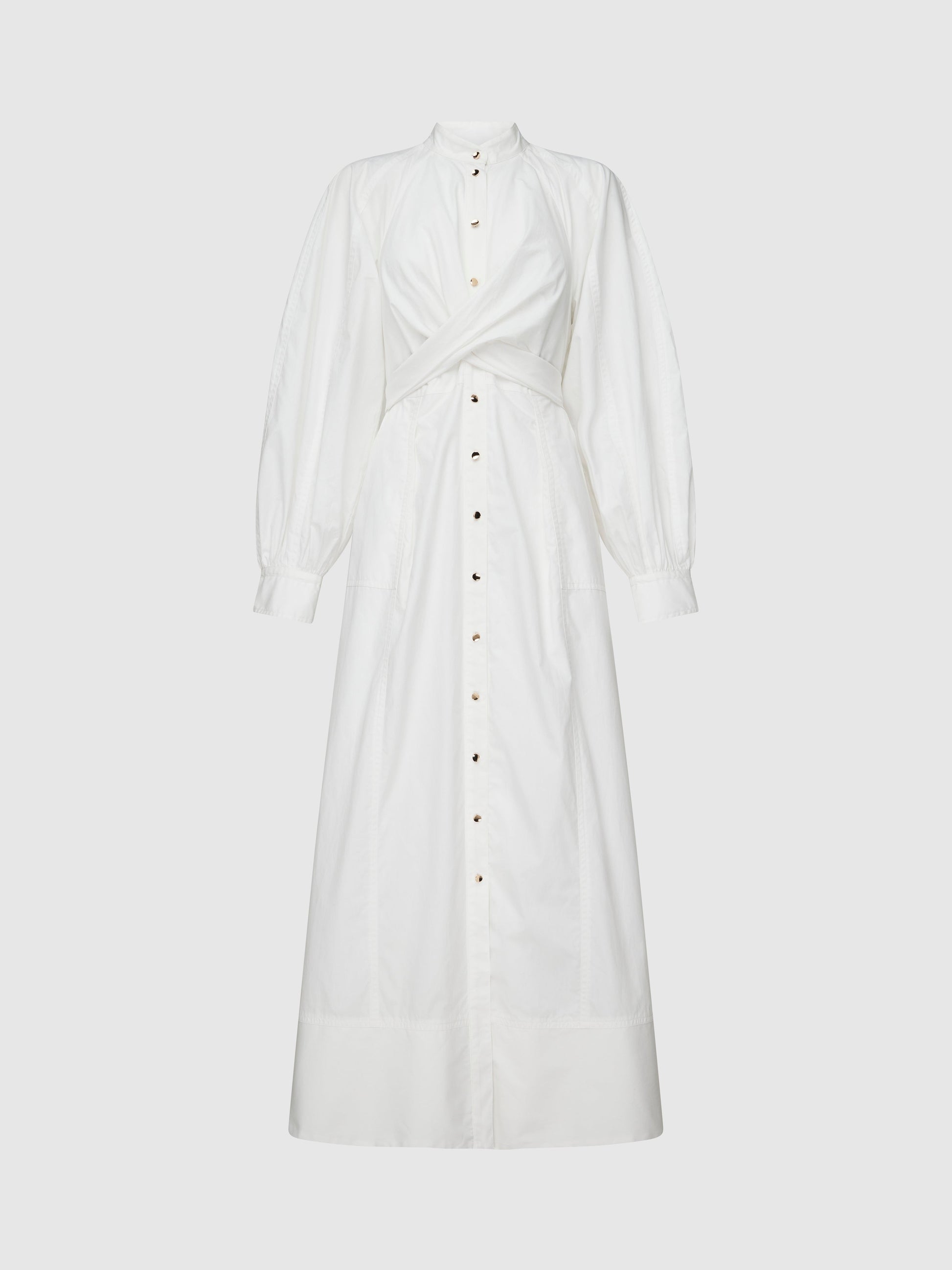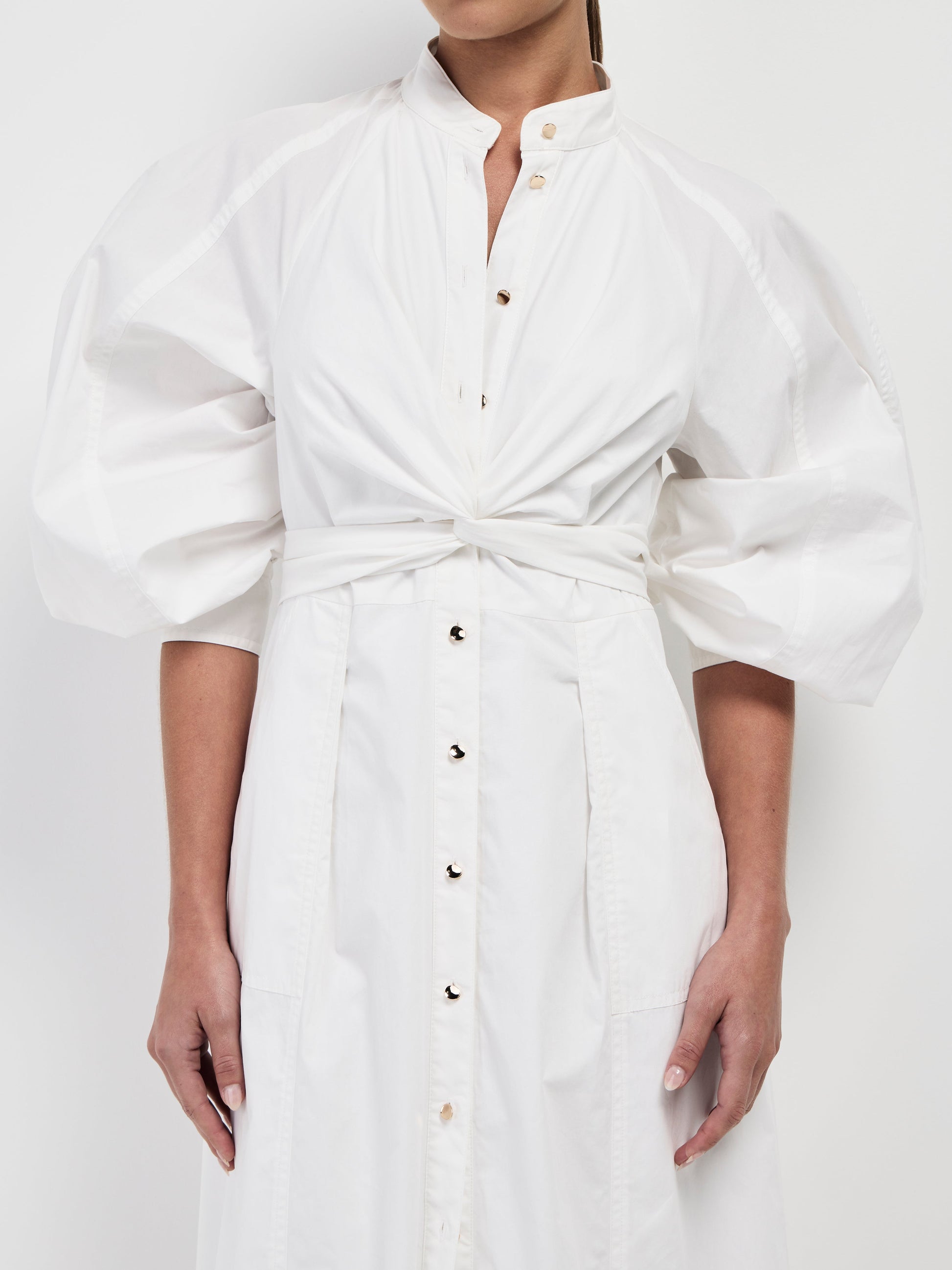The idyllic white dress to introduce to your wardrobe this Summer - Introducing the Dana Maxi Dress. Featuring 100% cotton fabrication, raglan long sleeves, maxi length skirt, side seam pockets and front tie detail at waist. Pair with our Estella Bag and Sorrento Earrings to complete the look.