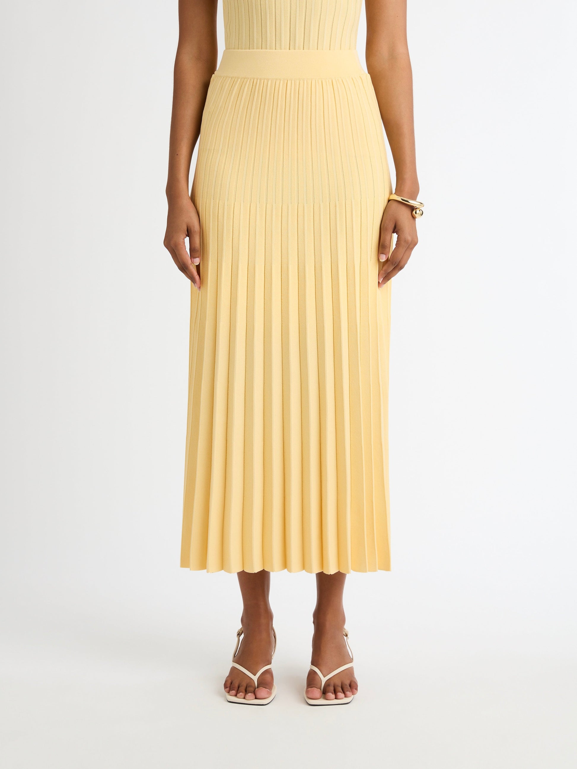 Encapsulate the glow of golden hour with our Elsa Knit Skirt! Featuring a yellow ribbed true knit fabrication, fit and flare styling, elasticated waistband and midi length. Pair with our matching Elsa Knit Top to complete the look.