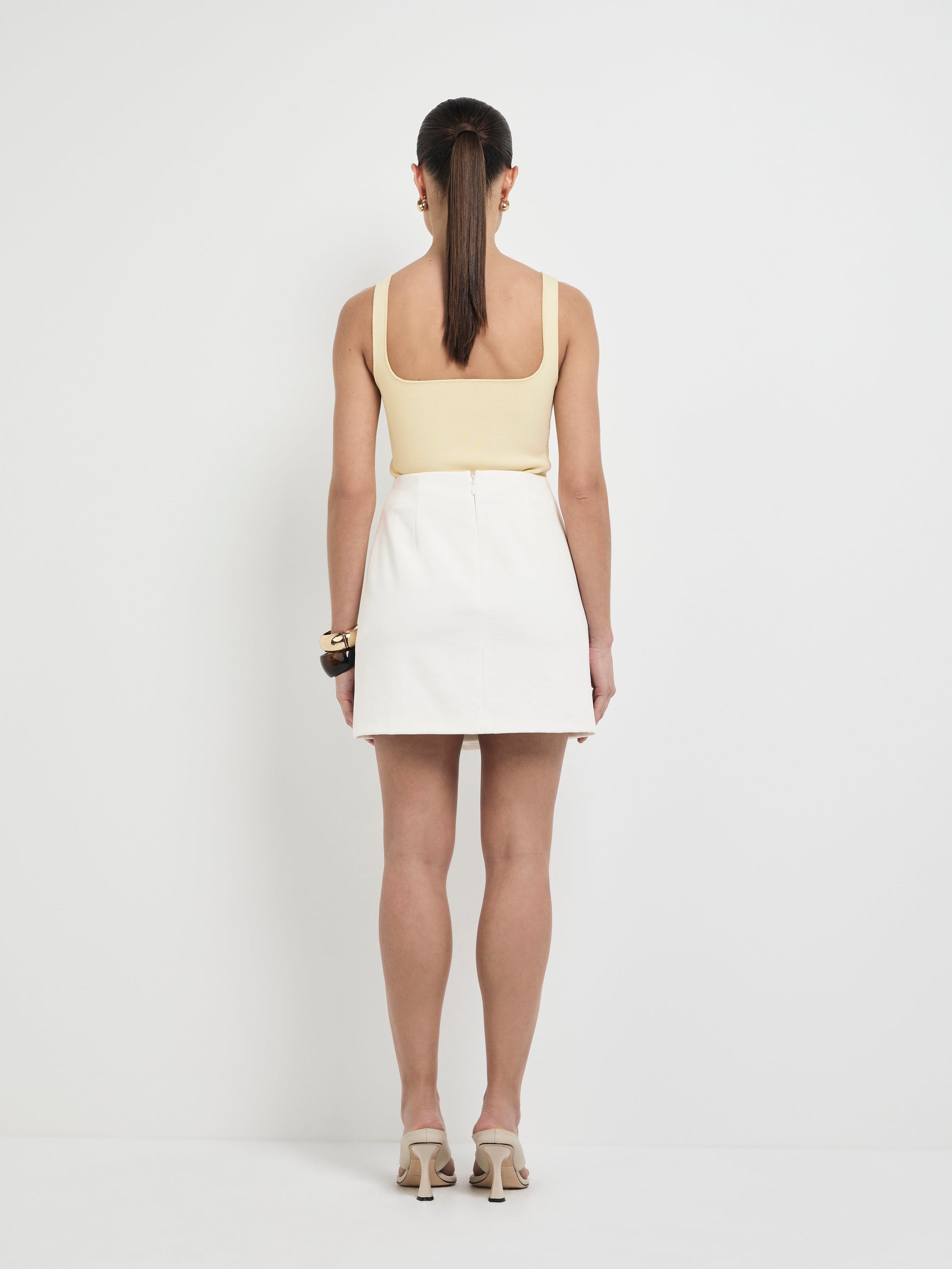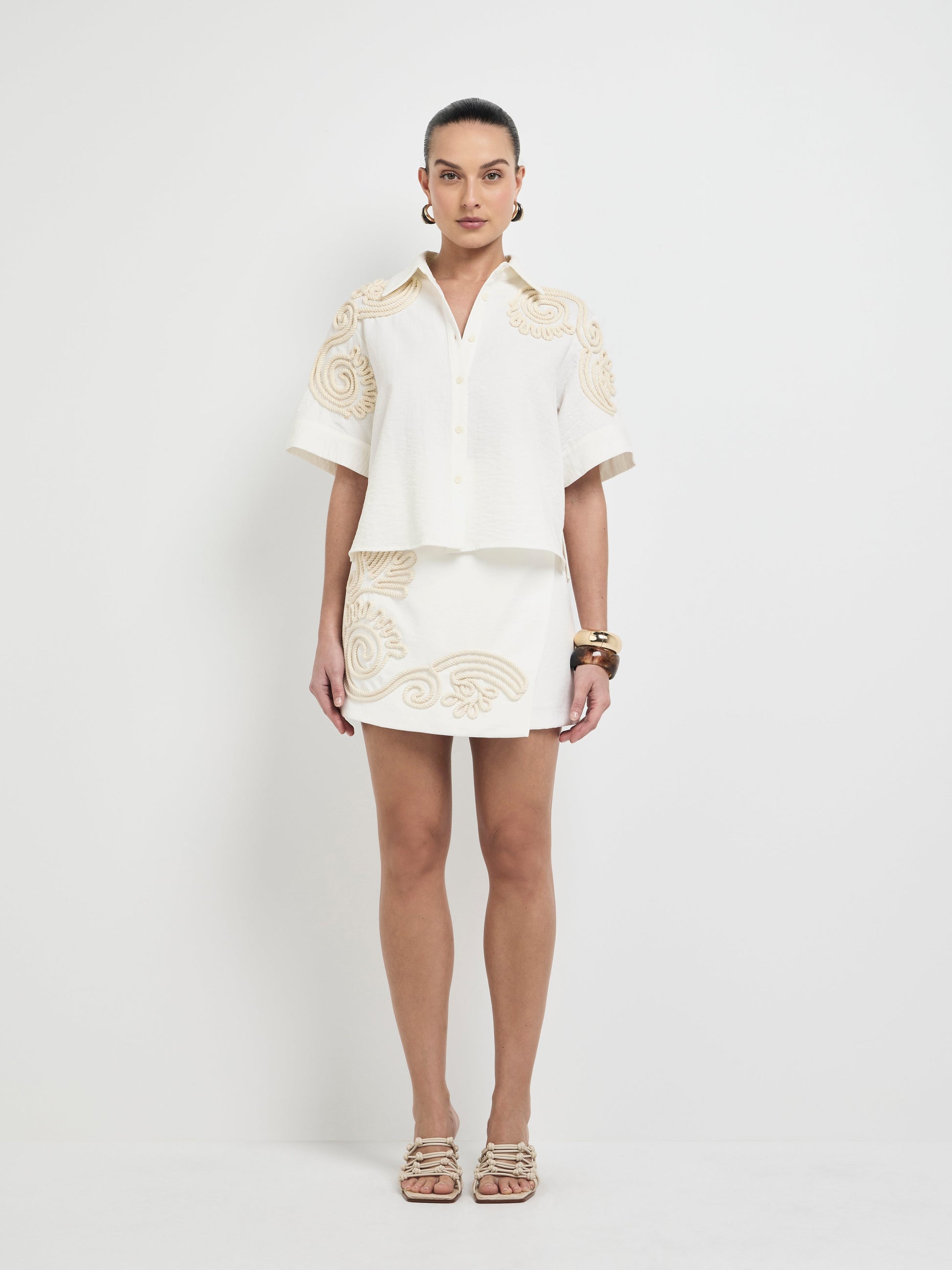 Make a statement in the Estelle Skirt. Crafted from a woven fabrication, this fitted mini skirt features a fully lined interior and a clean, structured silhouette. Designed with an overlapping front and detailed with intricate rope embroidery for a textural finish. Finished with an invisible centre back zip for ease of wear. Pair with the matching Estelle Shirt to complete the look.