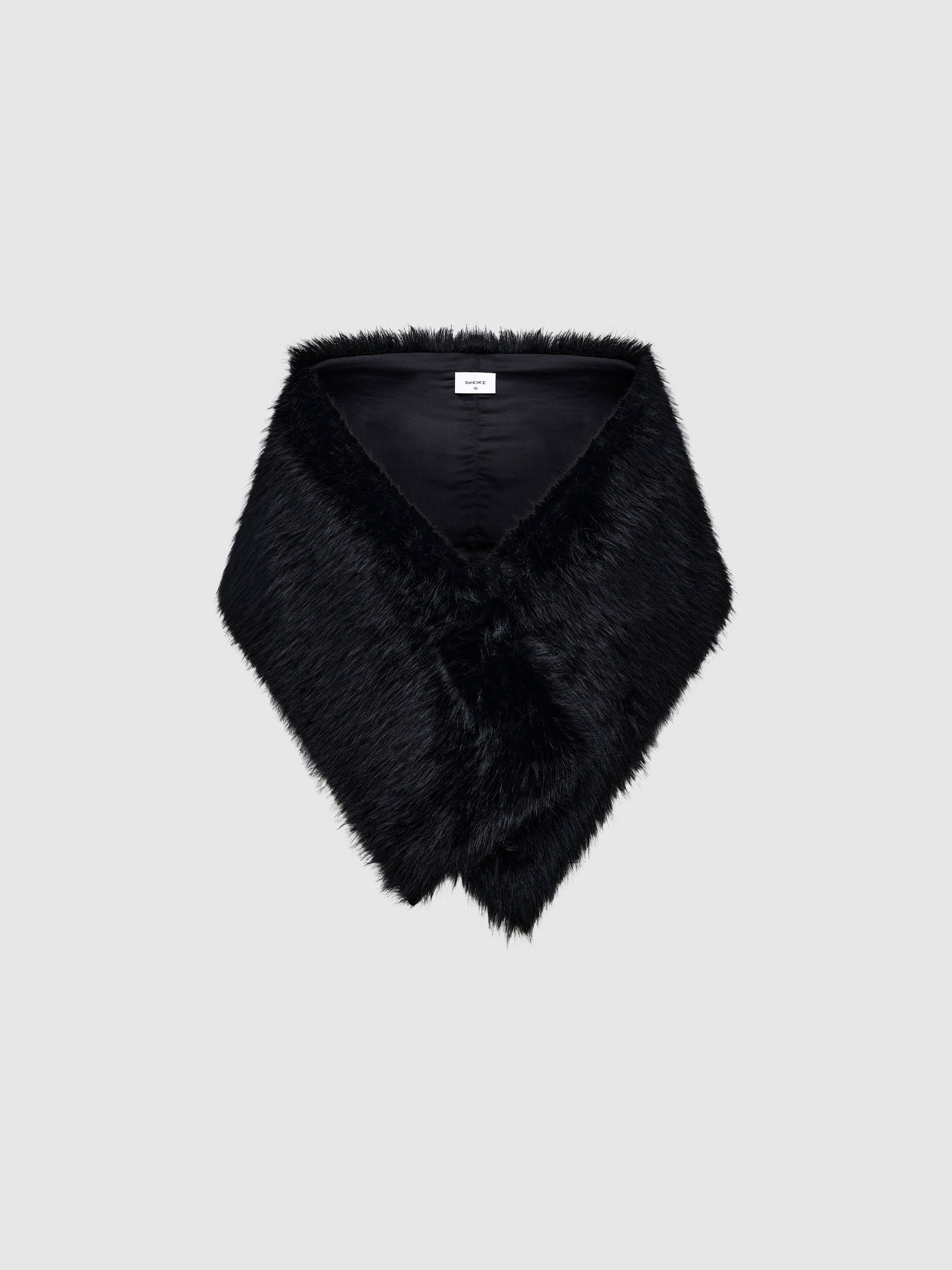 A statement fur to see you into the new season. Introducing the Gabrielle Shawl - showcasing a black faux fur fabrication, off shoulder styling and concealed snap buttons. Pair with our Athena Dress to complete the look.