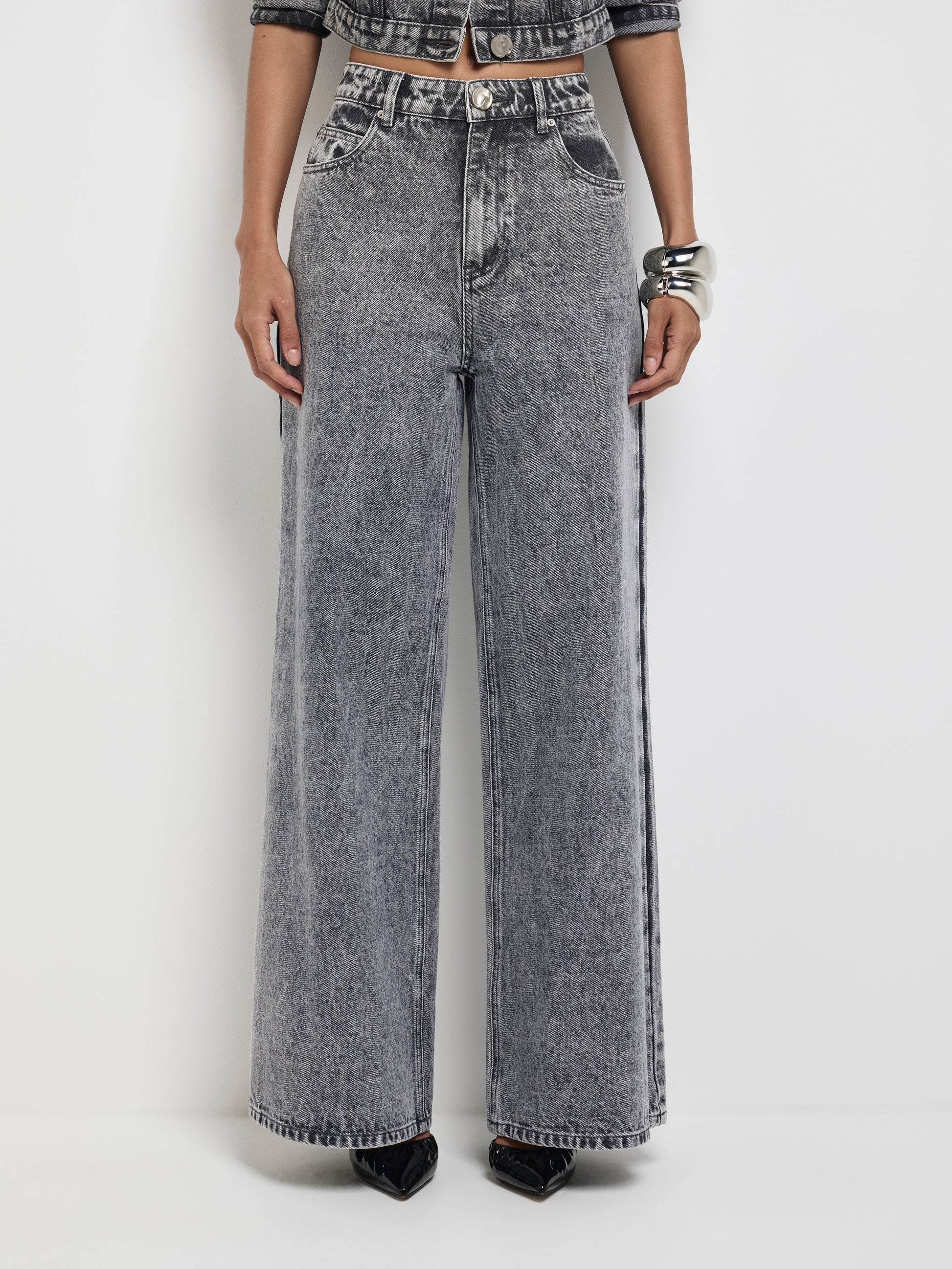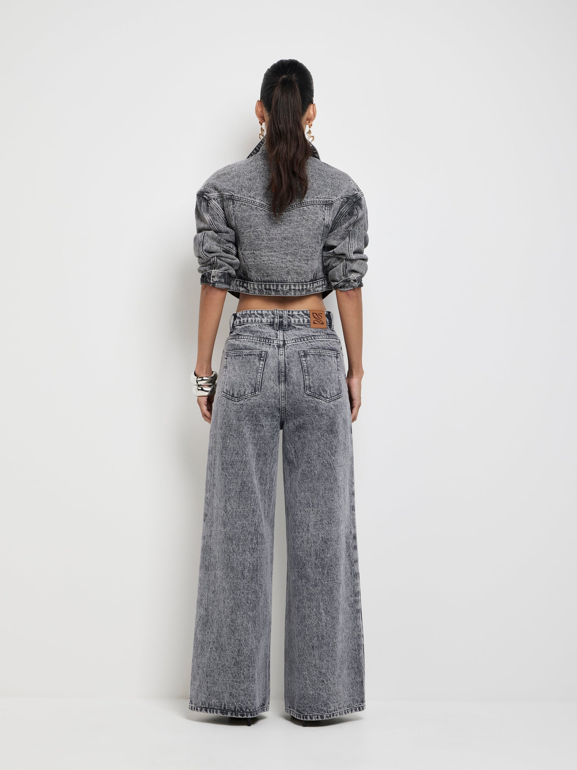 Off duty essentials. Introducing the Genesis Jean - Showcasing a grey washed denim fabrication, fixed waist, pockets and full flared length leg. Pair with our Cozy Knit Top and matching Genesis Denim Jacket to complete the look.