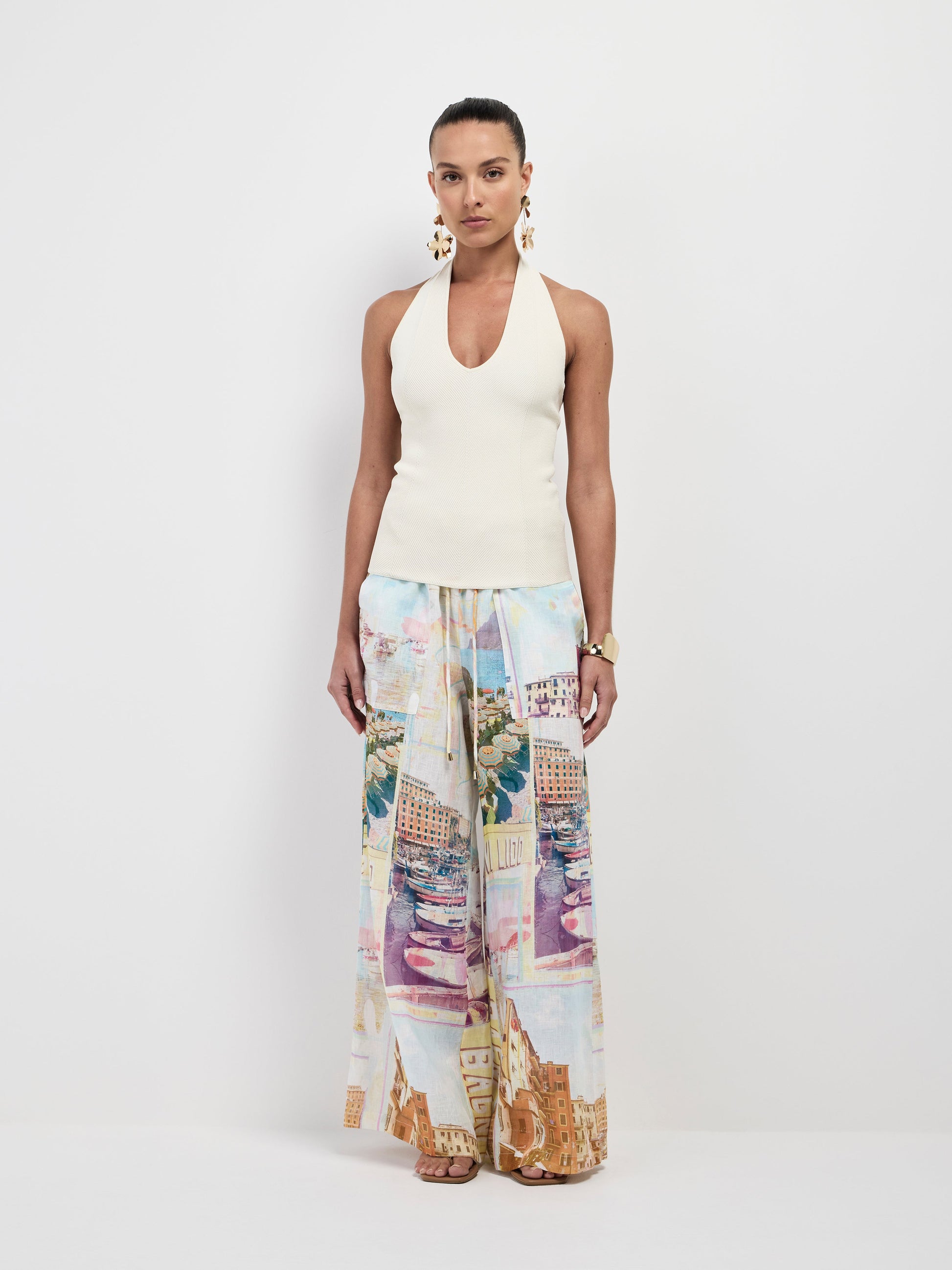 The modern essential - Introducing the Greenwich Top. Showcasing a true knit fabrication, fitted styling, halter neckline and deep V plunge. Pair with our Viva Bella Pant or Wave Nouveau Midi Skirt to complete the look.