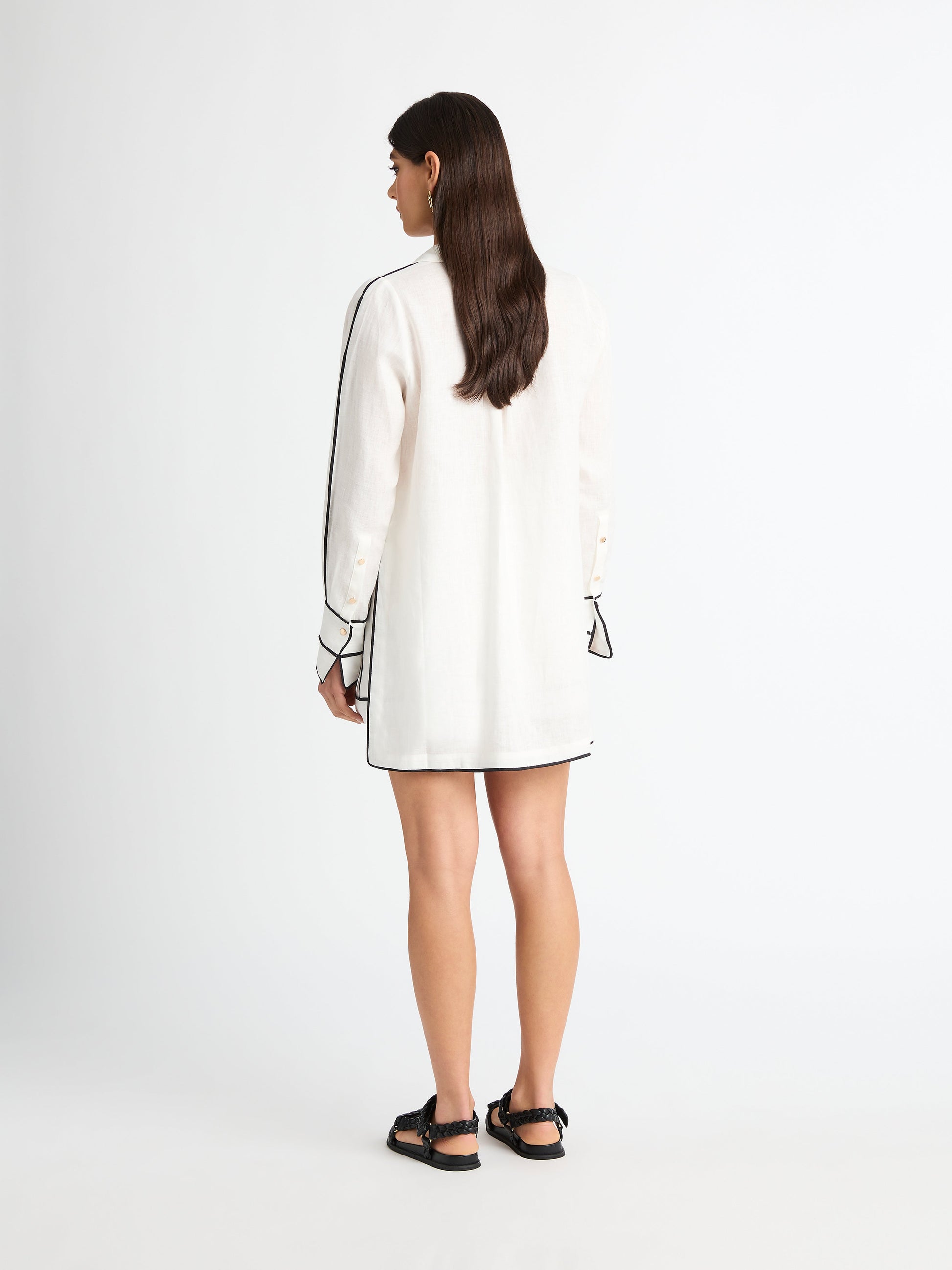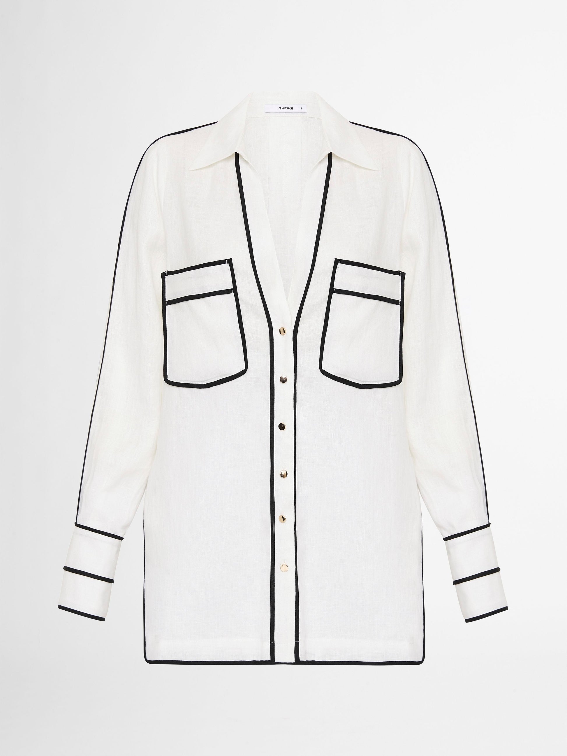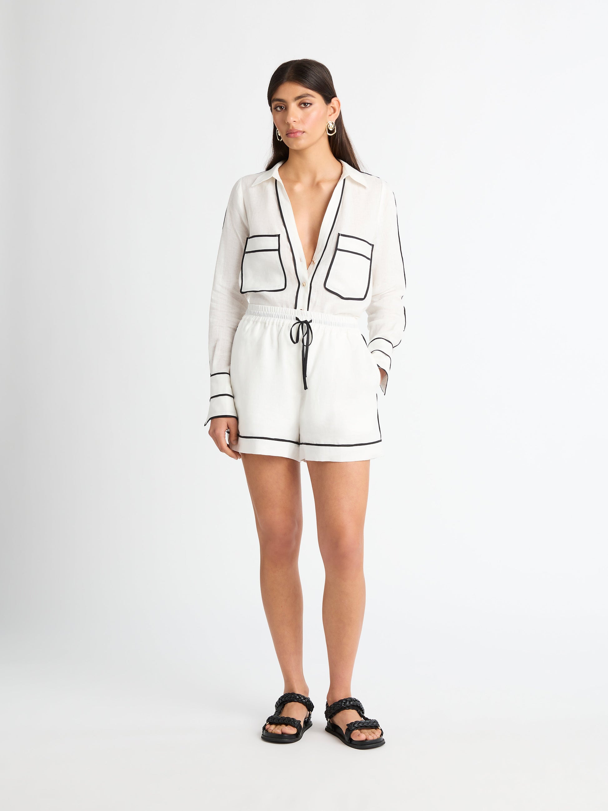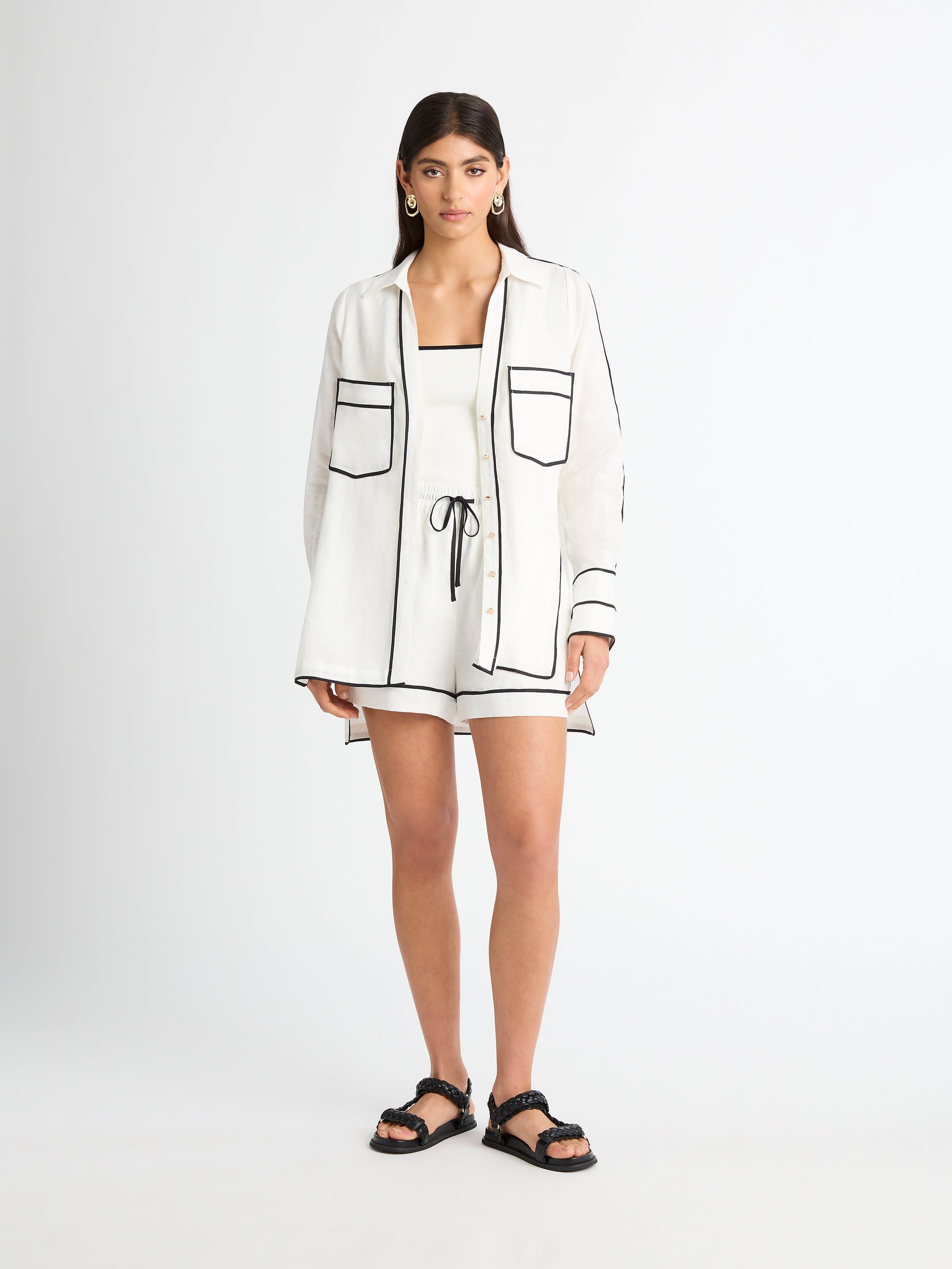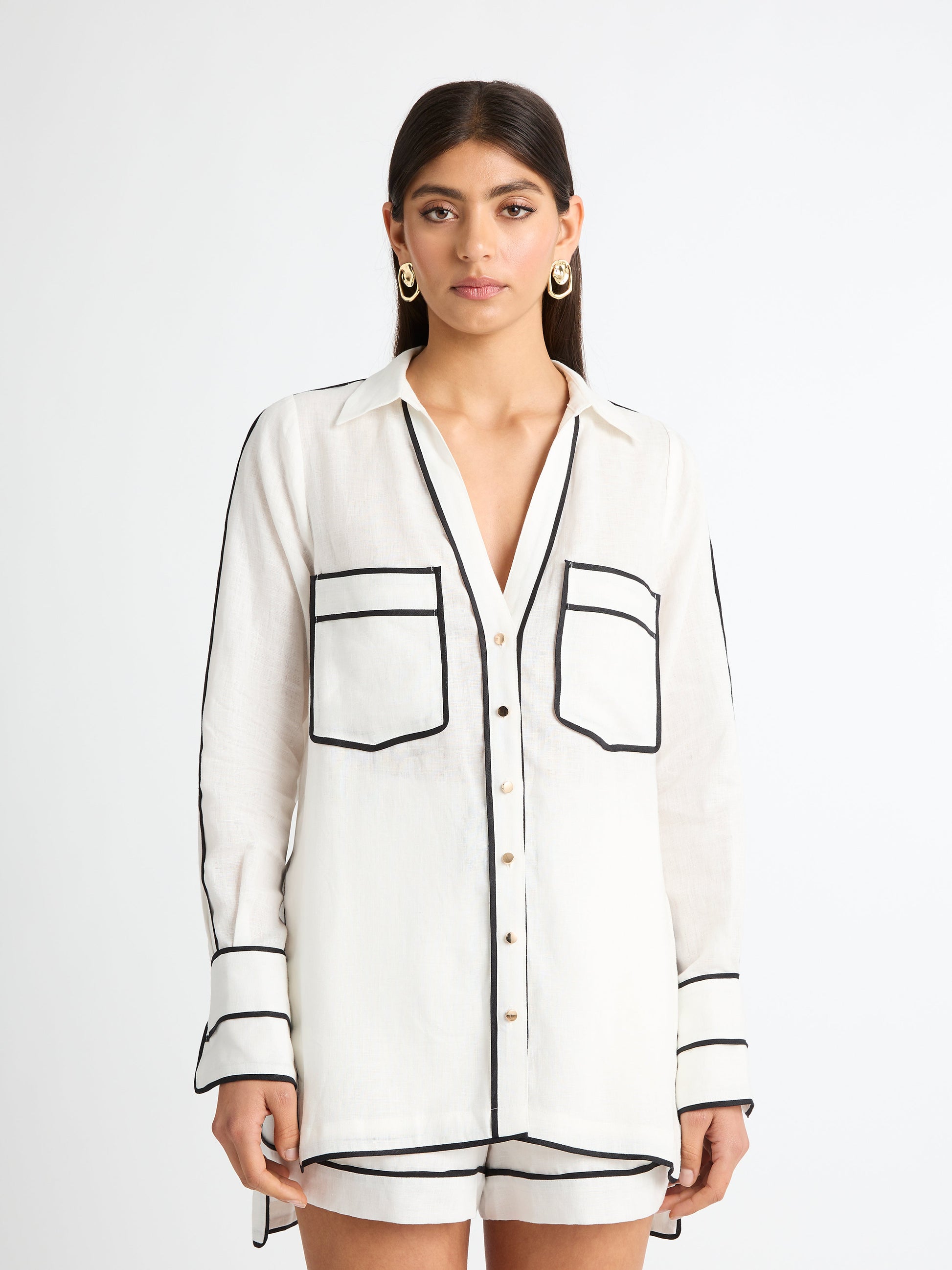 Looking for the perfect Linen Shirt? Well look no further our Hamilton Shirt has it all! Featuring 100% Linen fabrication, front placket closure, contrast black binding, collar neckline and long sleeves with buttons. Pair with our matching Hamilton Shorts to complete the look!