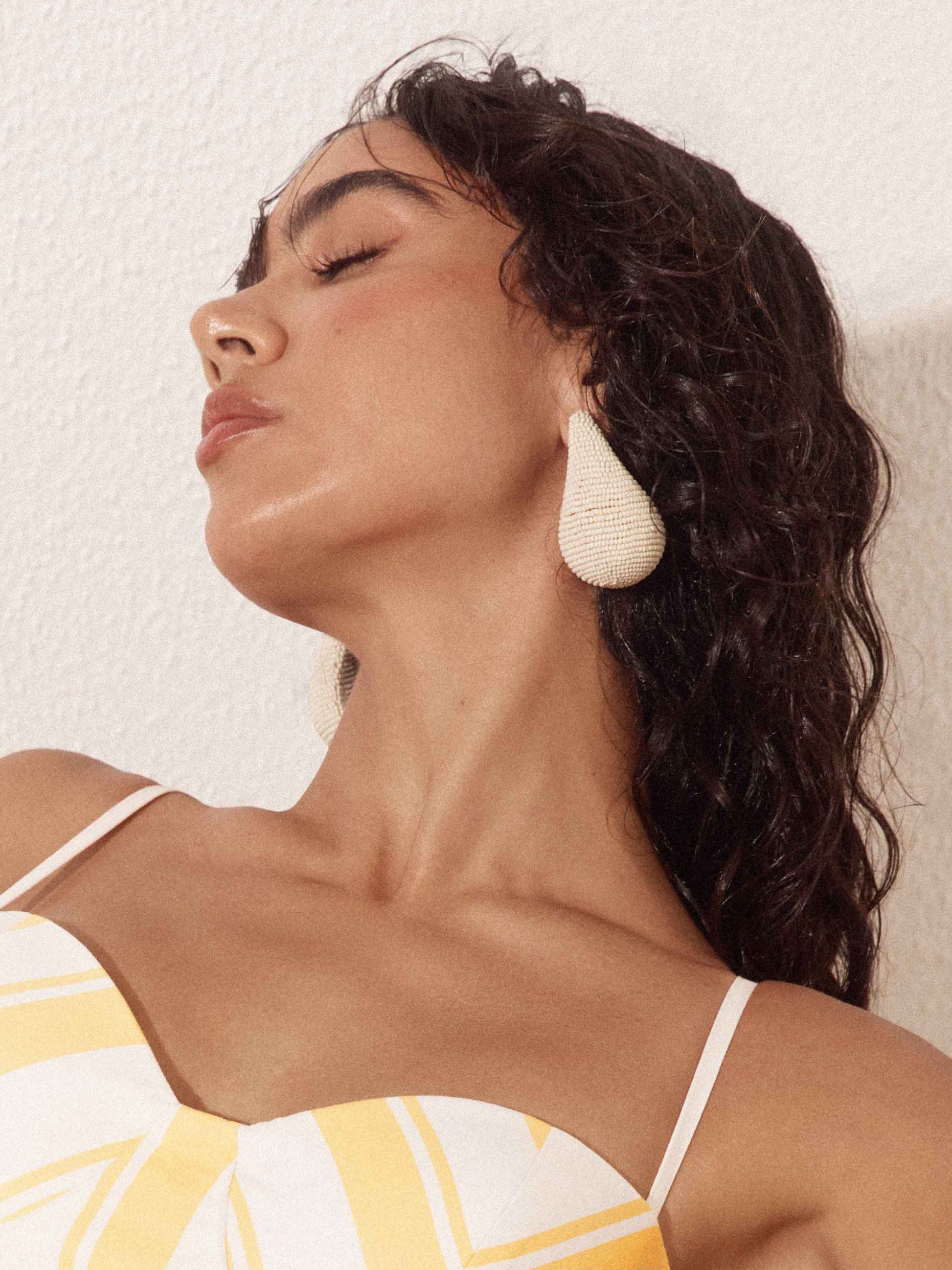 Finish off your Summer outfit with the Issey earrings in cream. These staple beaded teardrops are a styling essential this season!