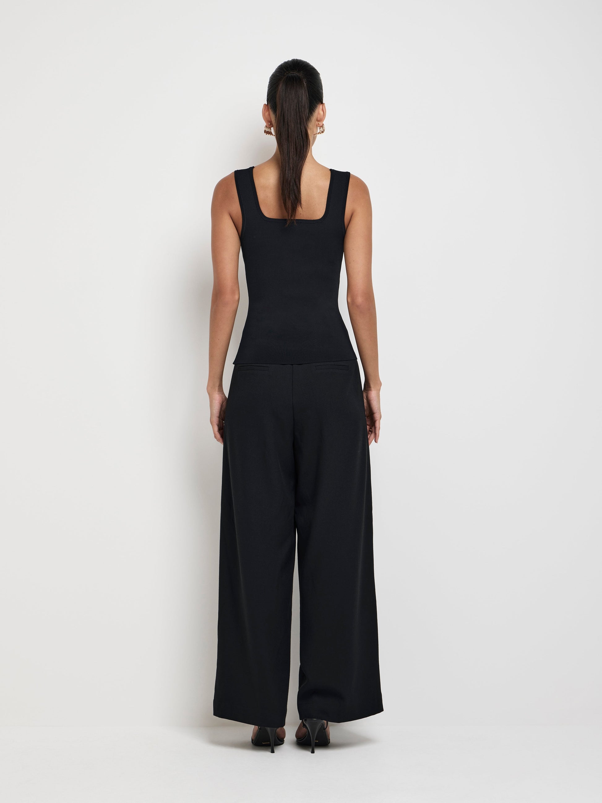 Our Kaia Top is the must have knit top of this Season. Featuring a black stretch knit fabrication, soft square neckline, slim fit and sleeveless design. Pair back with our Adele Pants for the look of the season.