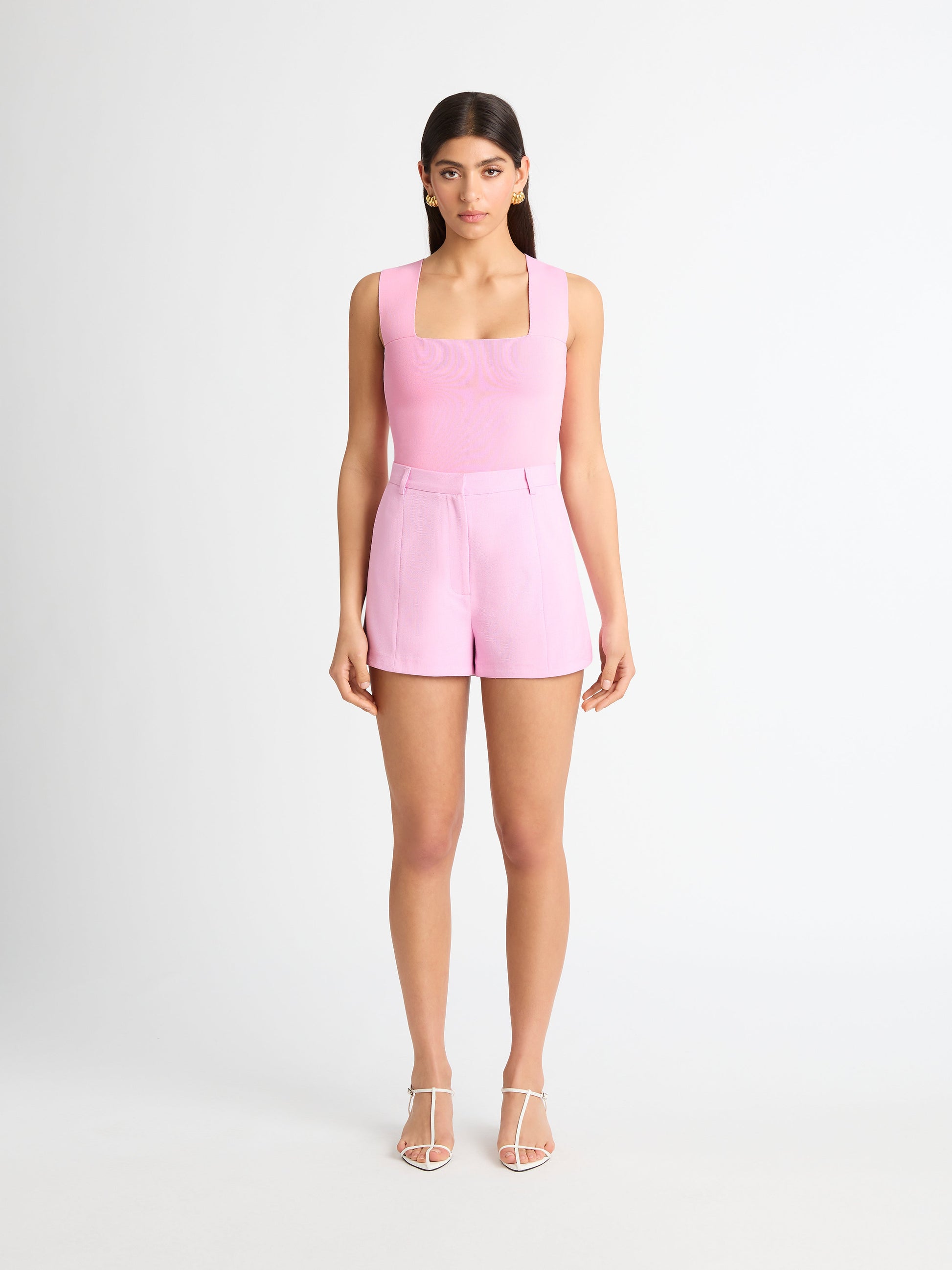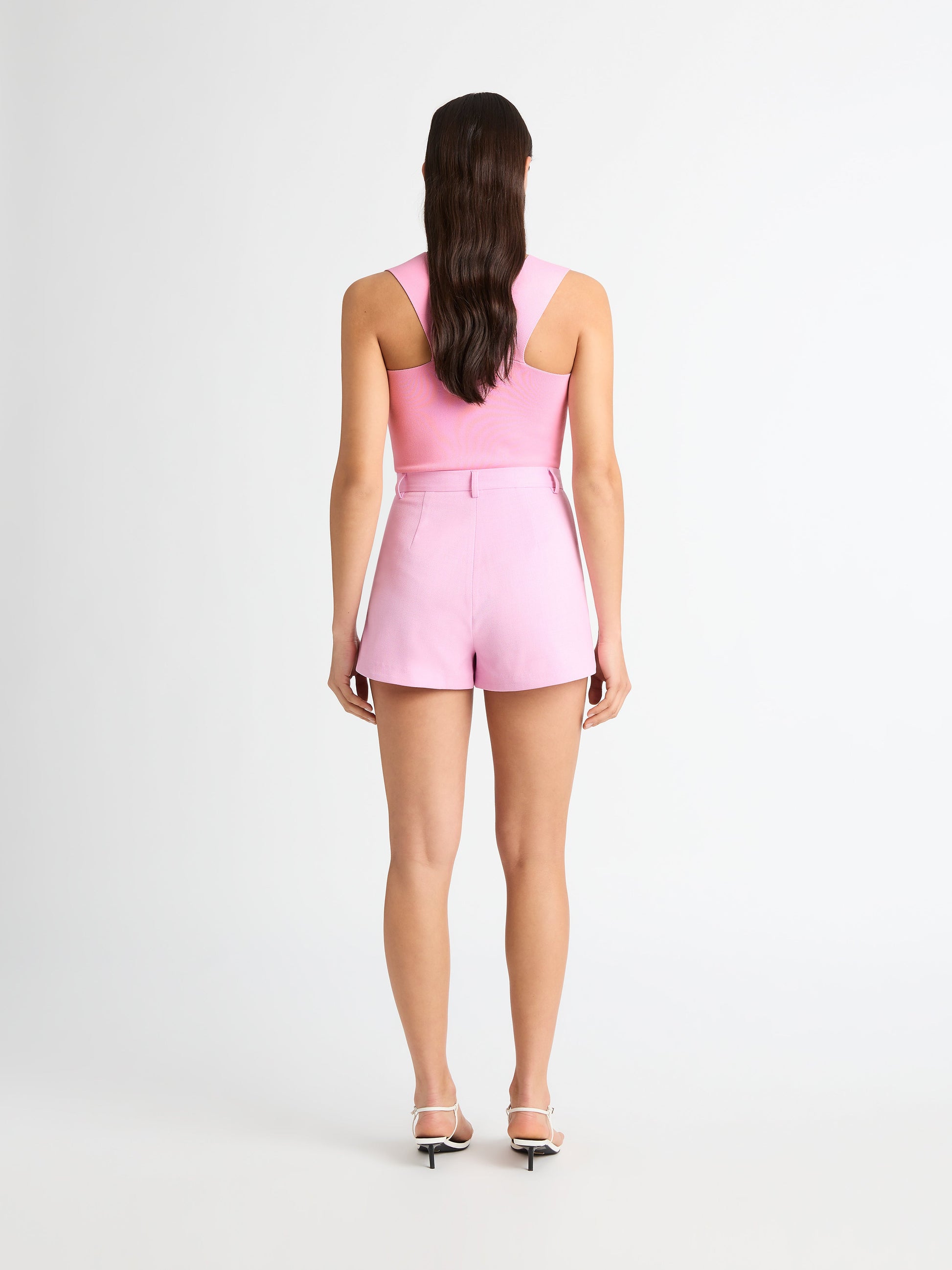 Spring into the new season in pink - Introducing the Kiss And Tell Shorts, showcasing a pink woven fabrication. slim fit with a fixed waist band, mid rise waist and side seam pockets. Pair with our Amalfi Longline Top to complete the look.