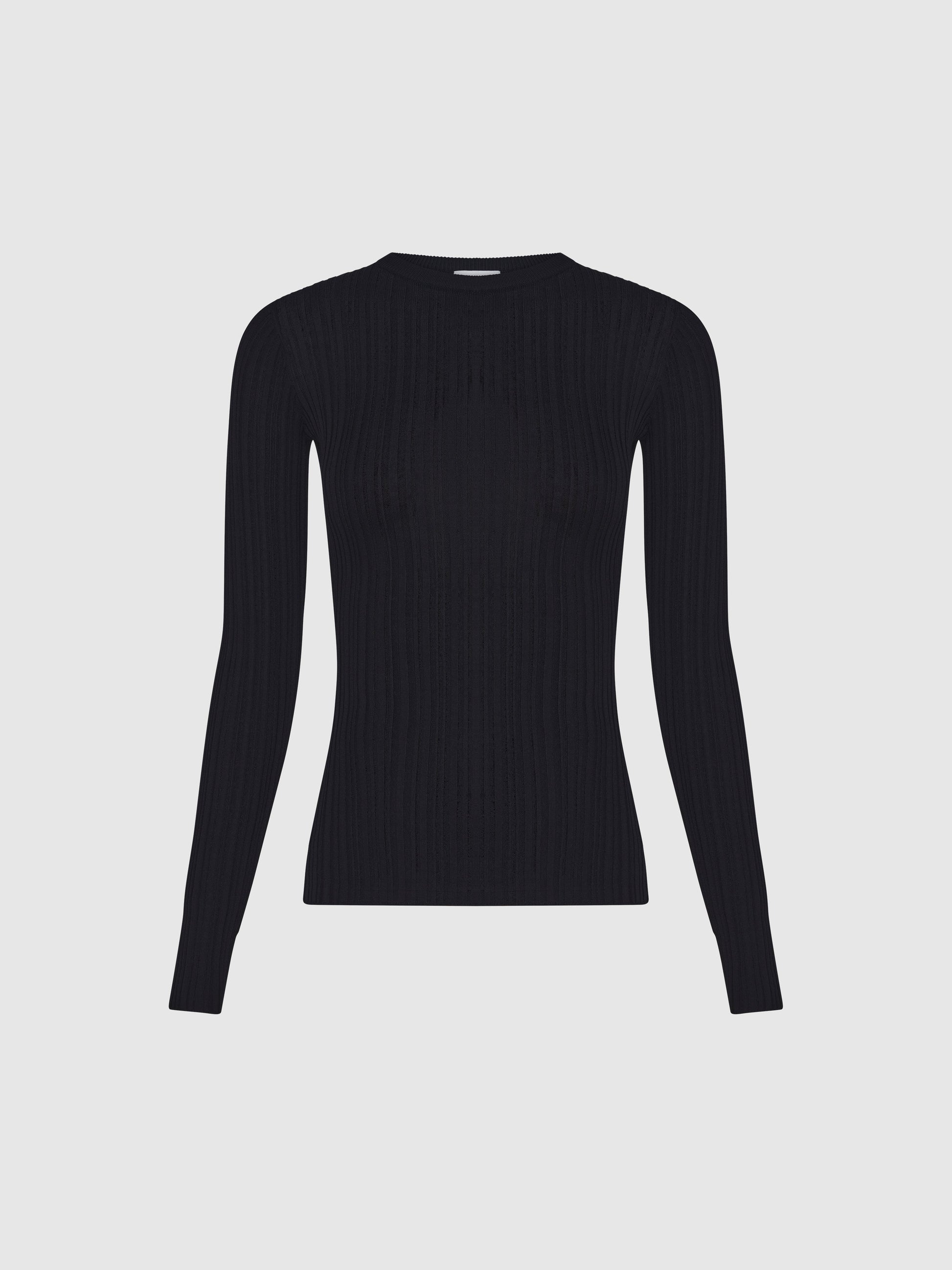 Look no further for your new favourite staple knits! Introducing the Maybank Knit Top, perfect to wear with any outfit! Featuring a sheer black ribbed knit fabrication, long sleeves, fitted styling and ribbed hem finish. This versatile knit is just what your wardrobe needs this season. Love this look? Also available in plum.