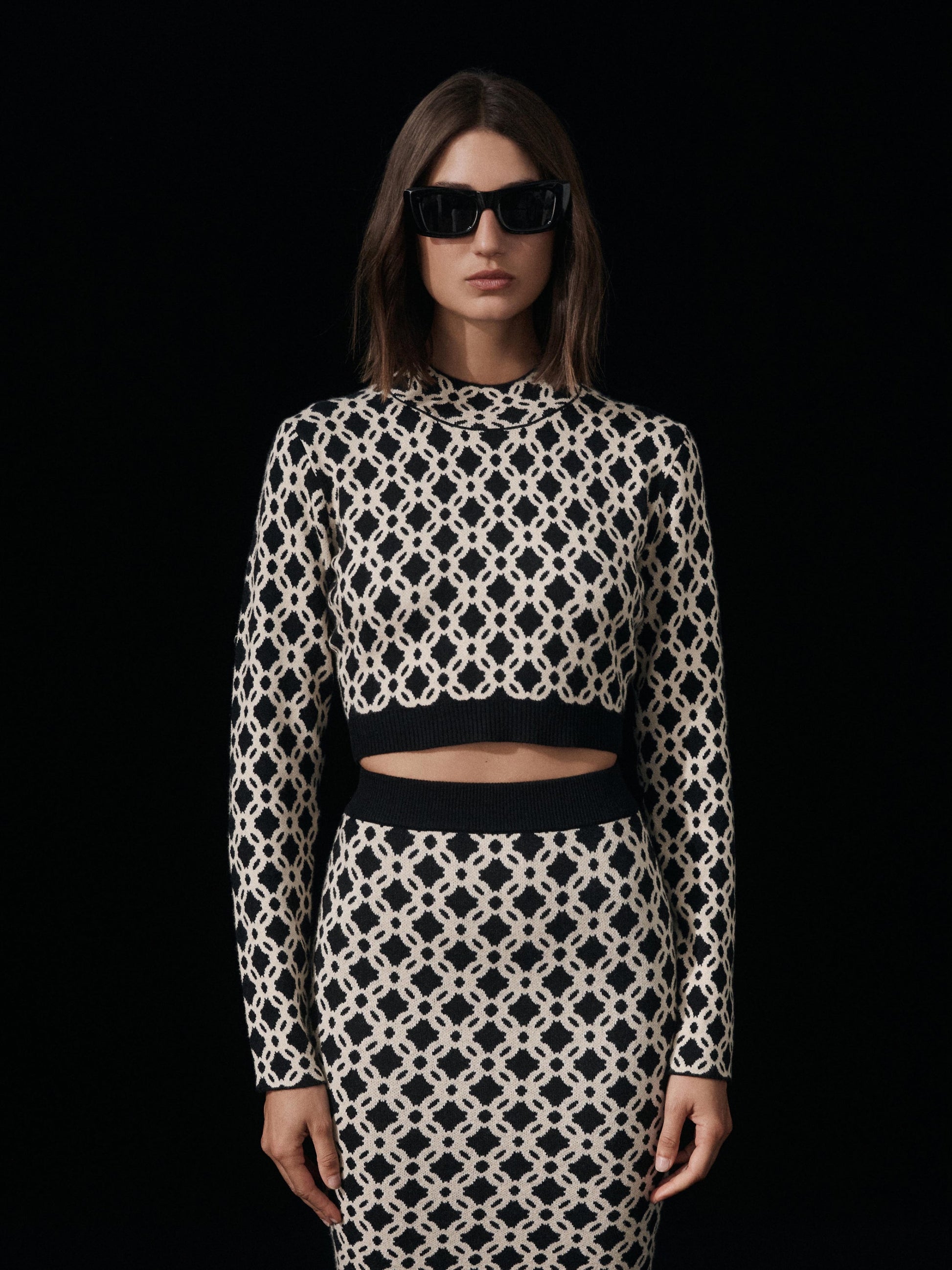 Elevate your everyday wardrobe with the Monaco Knit Top. Crafted from a true knit fabrication, it features a flattering fitted silhouette, cropped length and long sleeves for a sleek, modern look. Complete the look with our matching Monaco Knit Skirt.
