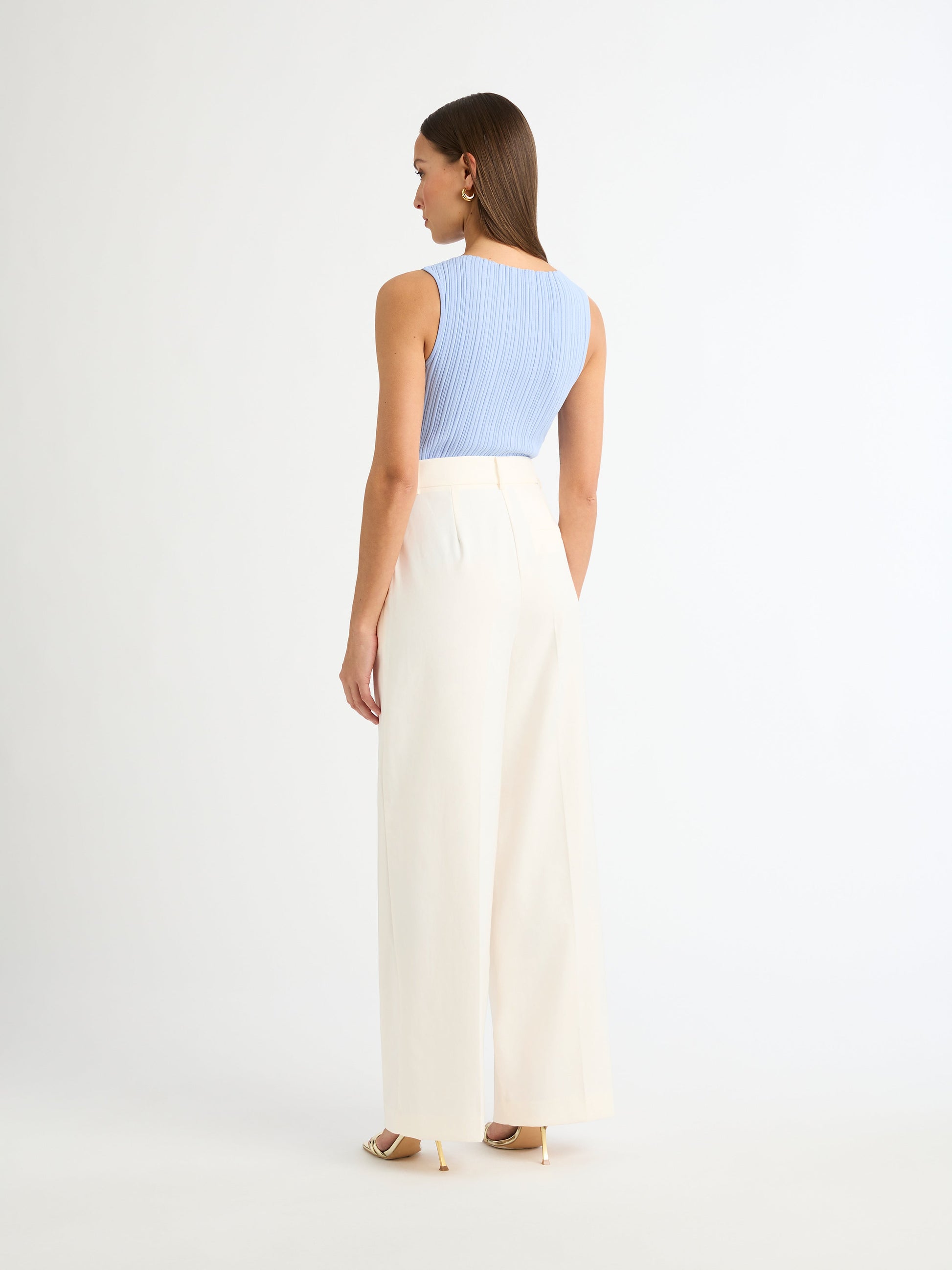 Elevated tailoring for the modern woman. Introducing the Mystic Moonlit Pant - showcasing a woven fabrication, wide leg, pressed pleat down front and back, pockets and fixed waist. Pair with our Byron Knit Top to complete the look.
