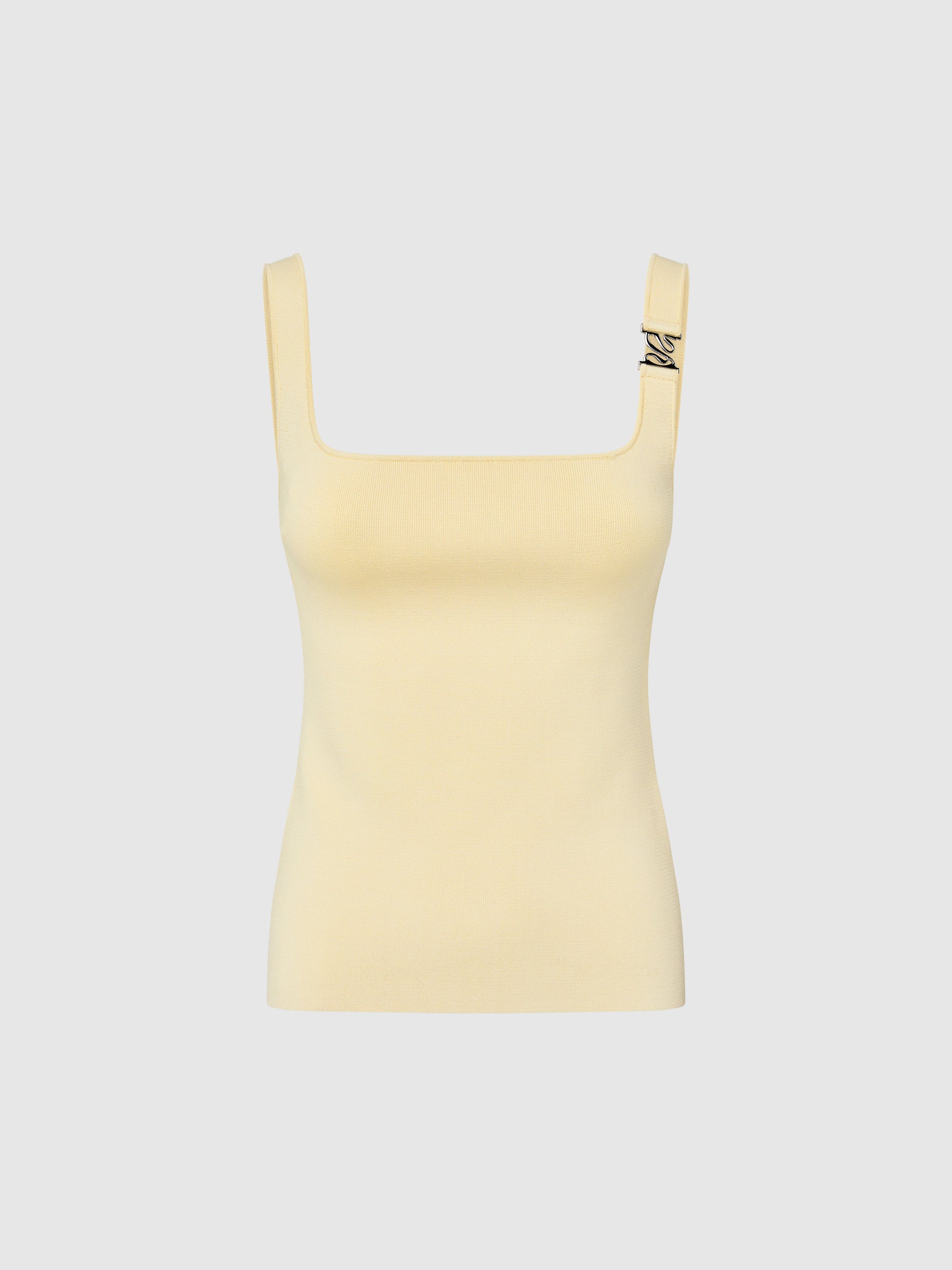 Our Nicolette Knit Top is the must have knit top of this Season. - featuring a limoncello true stretch knit fabrication, scoop neckline, alim fit styling and Sheike brandmark metal trim on strap. Pair back with our Esme Jean or Kiss and Tell Short for a casual look of the season.