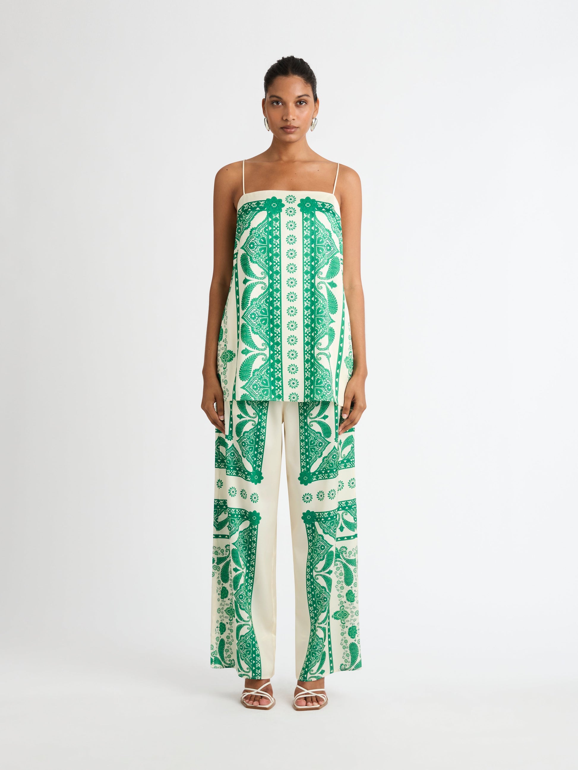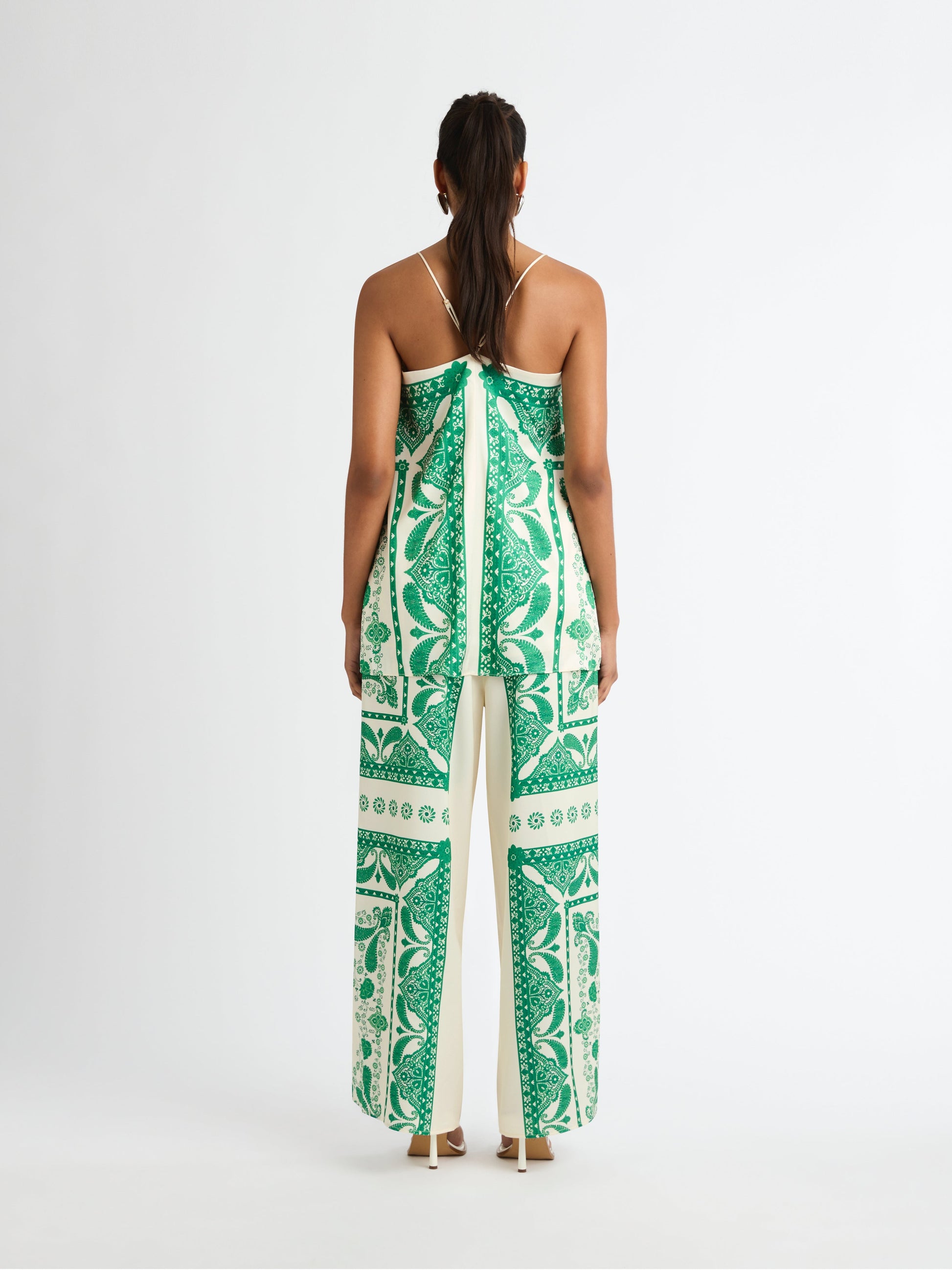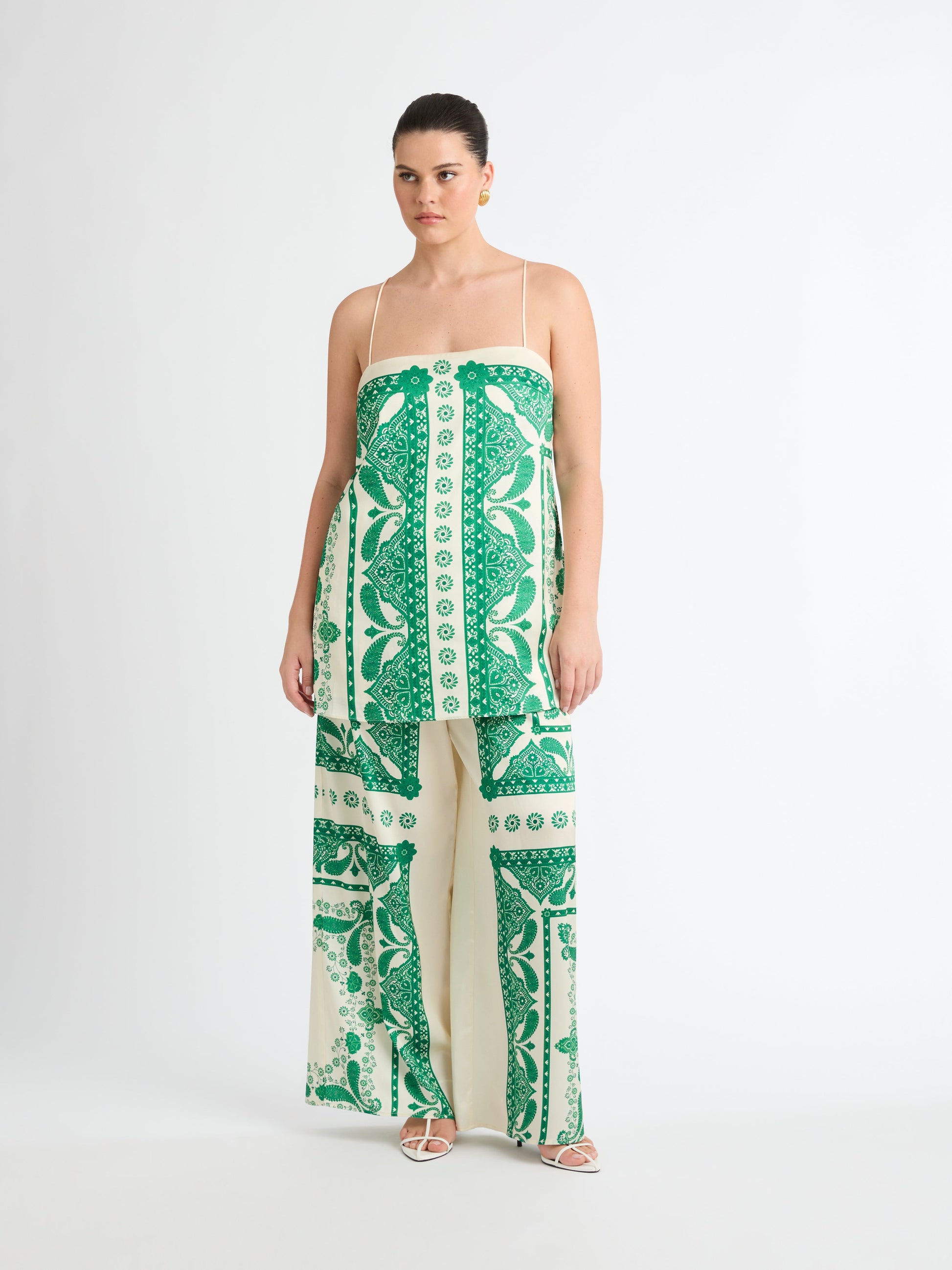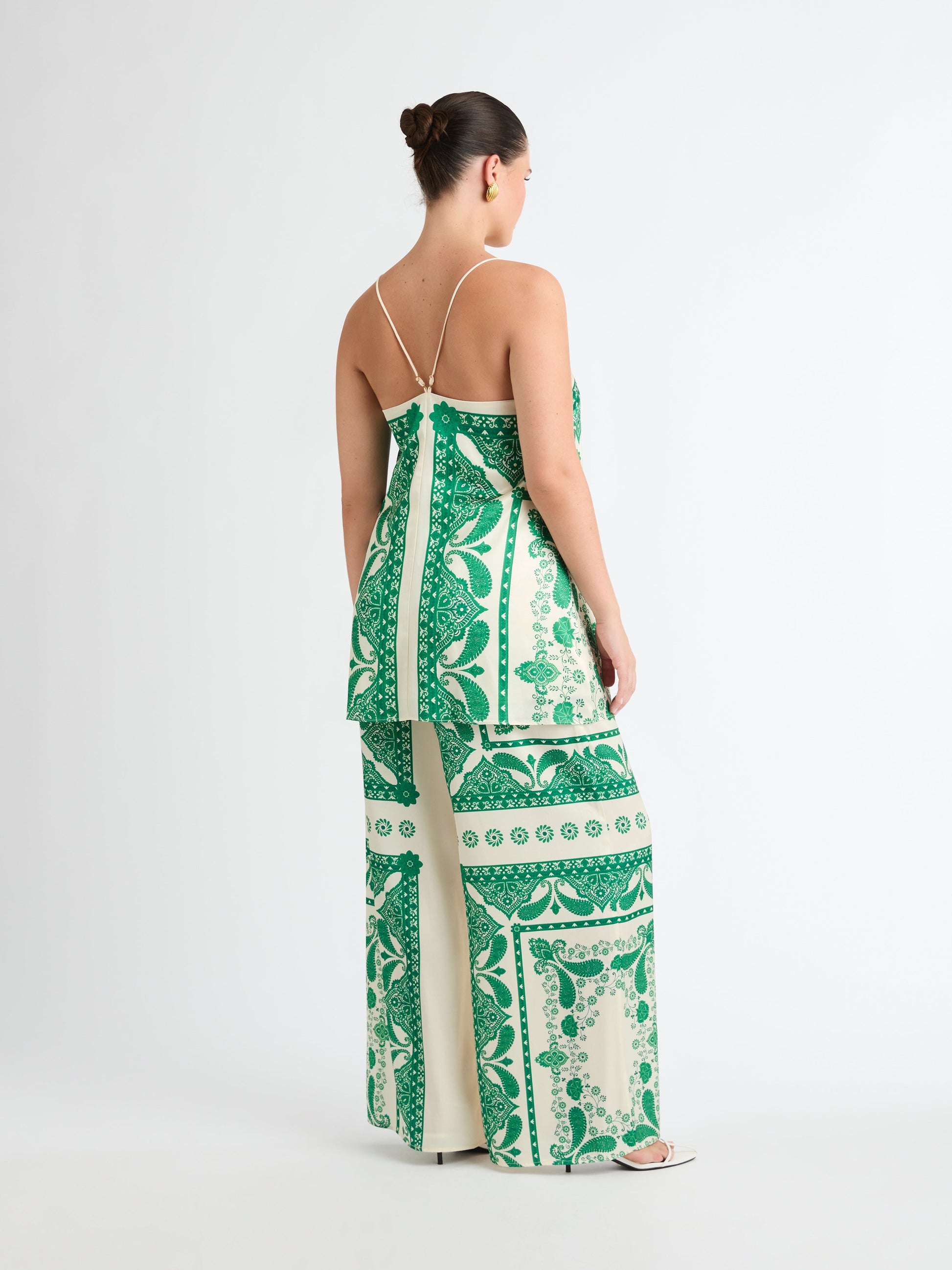 The Ophelia Cami together with its matching Ophelia Pants are perfect for your next summer event. This captivating satin, longline styled set offers a fresh look at iconic summer hues of creams and greens. This cami is fully lined and comes with adjustable thin straps for user ease. Complete with the Ophelia Pant for a matching set.