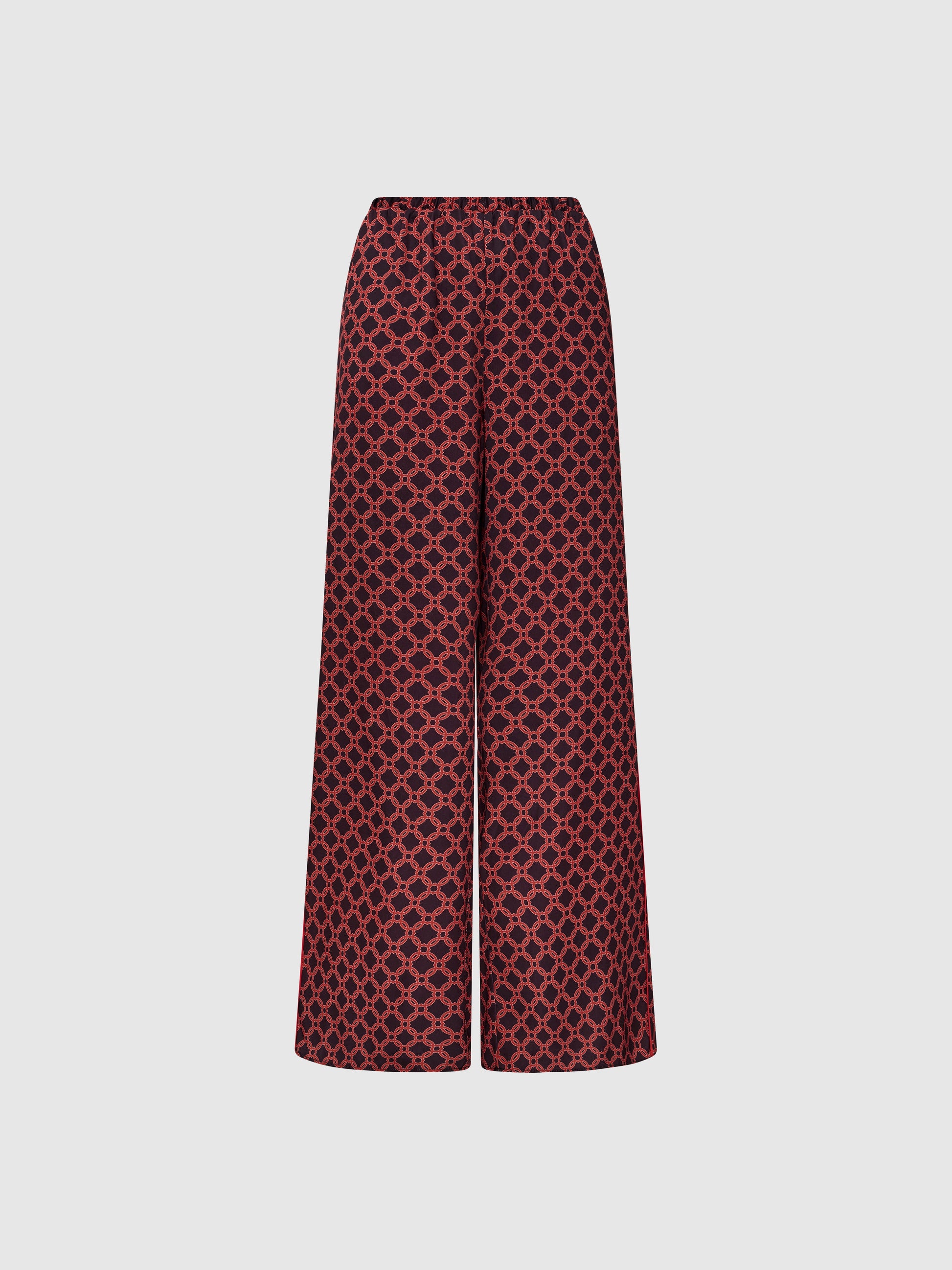 Make it a moment in print. Our Remi Pant is here to take your style to the next level - featuring a geo print satin fabrication, elasticated waist, wide leg fit and contrast piping detail at side seam. Complete the look with our matching Remi Top!