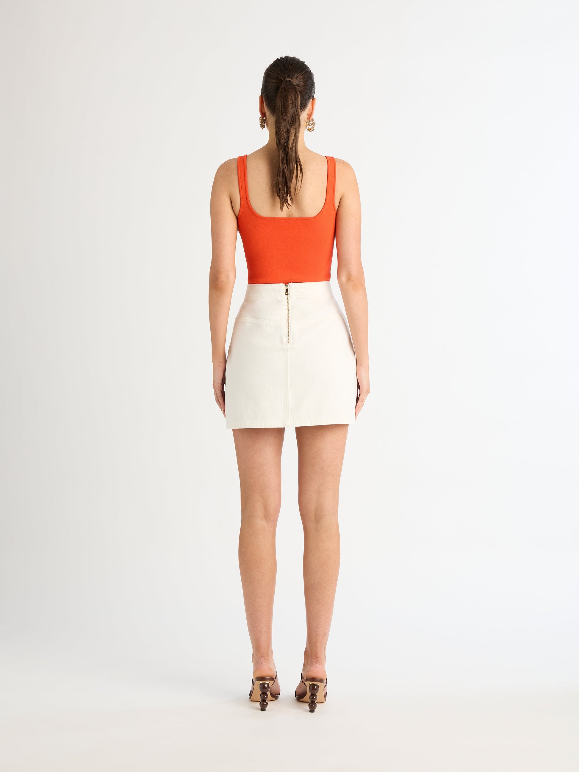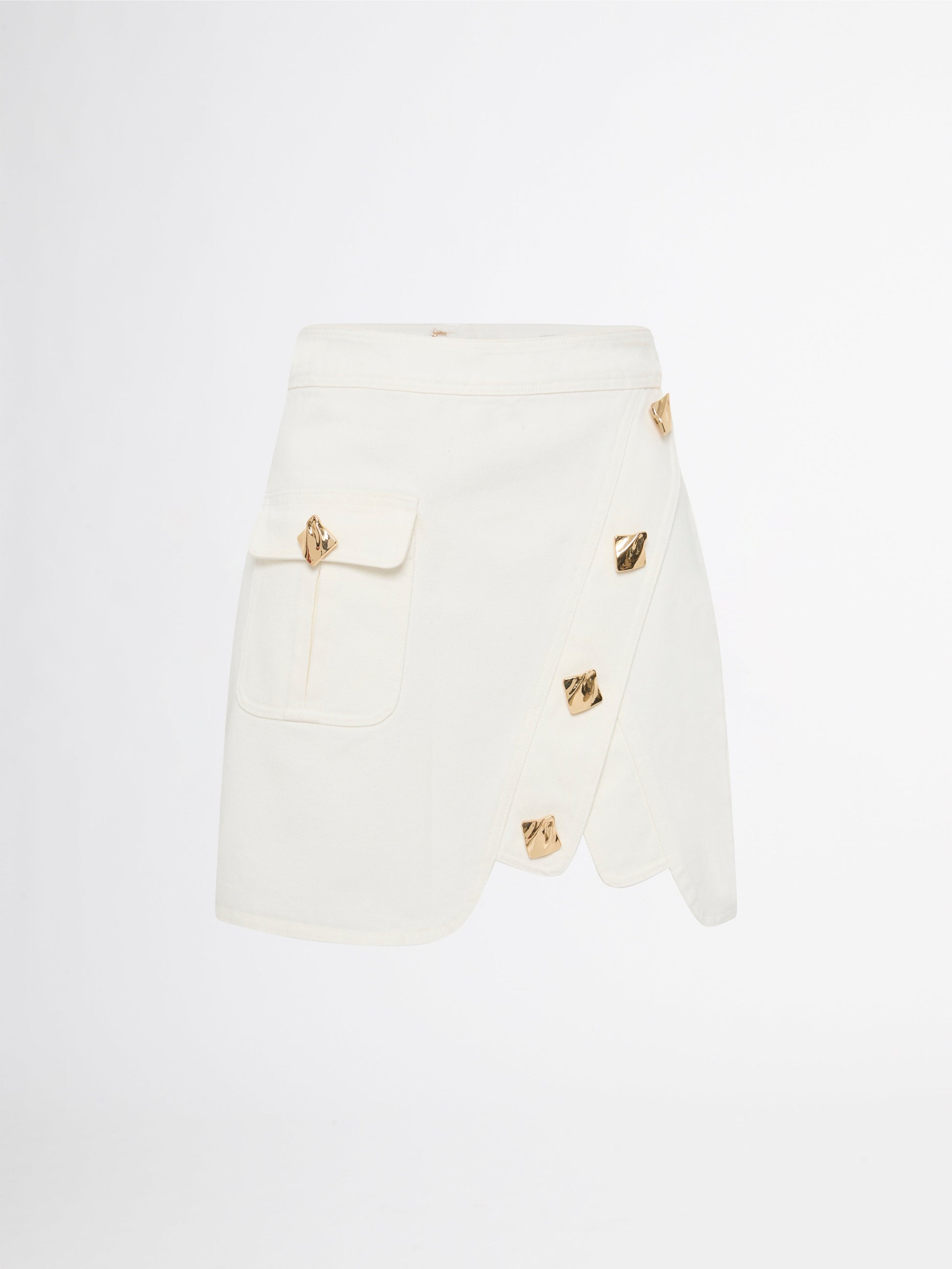 A denim moment unlike any other. Introducing the Republic Denim Skirt - Showcasing a fixed waist, gold contrast buttons and patch pocket. Pair with our Dolce Knit Top to complete the look.