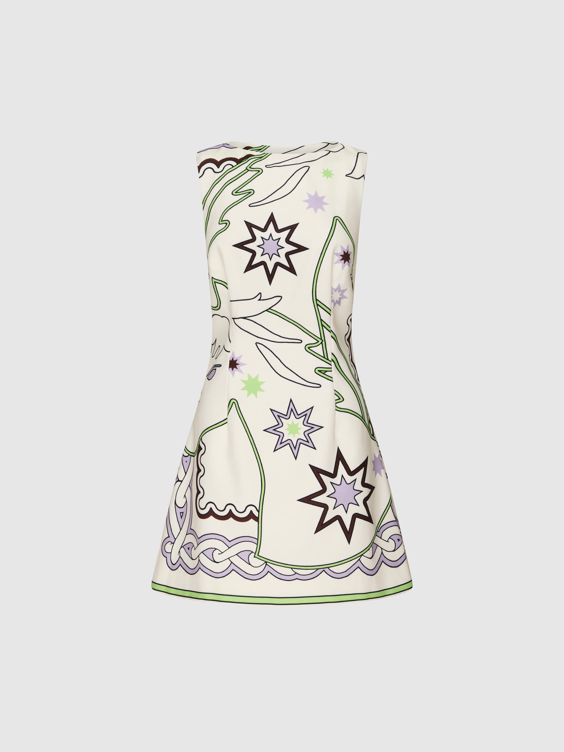 Playful prints take center stage with our Rodeo Mini Dress - designed to make you stand out from the crowd. Featuring a printed woven fabrication, high neckline, cut out back waist, functional buttons of back bodice and mini skirt length. Pair with the Issey Earrings to complete the look.