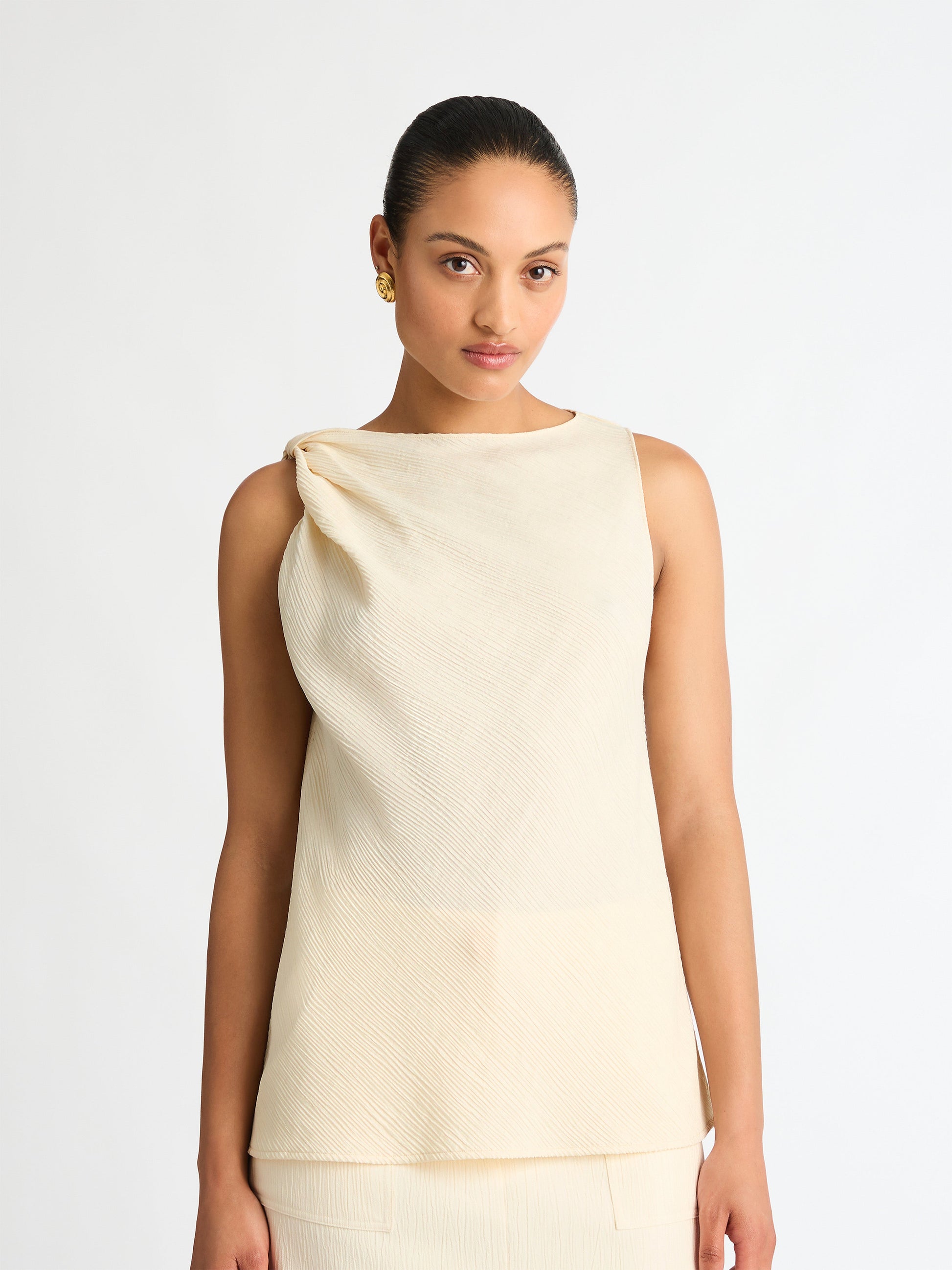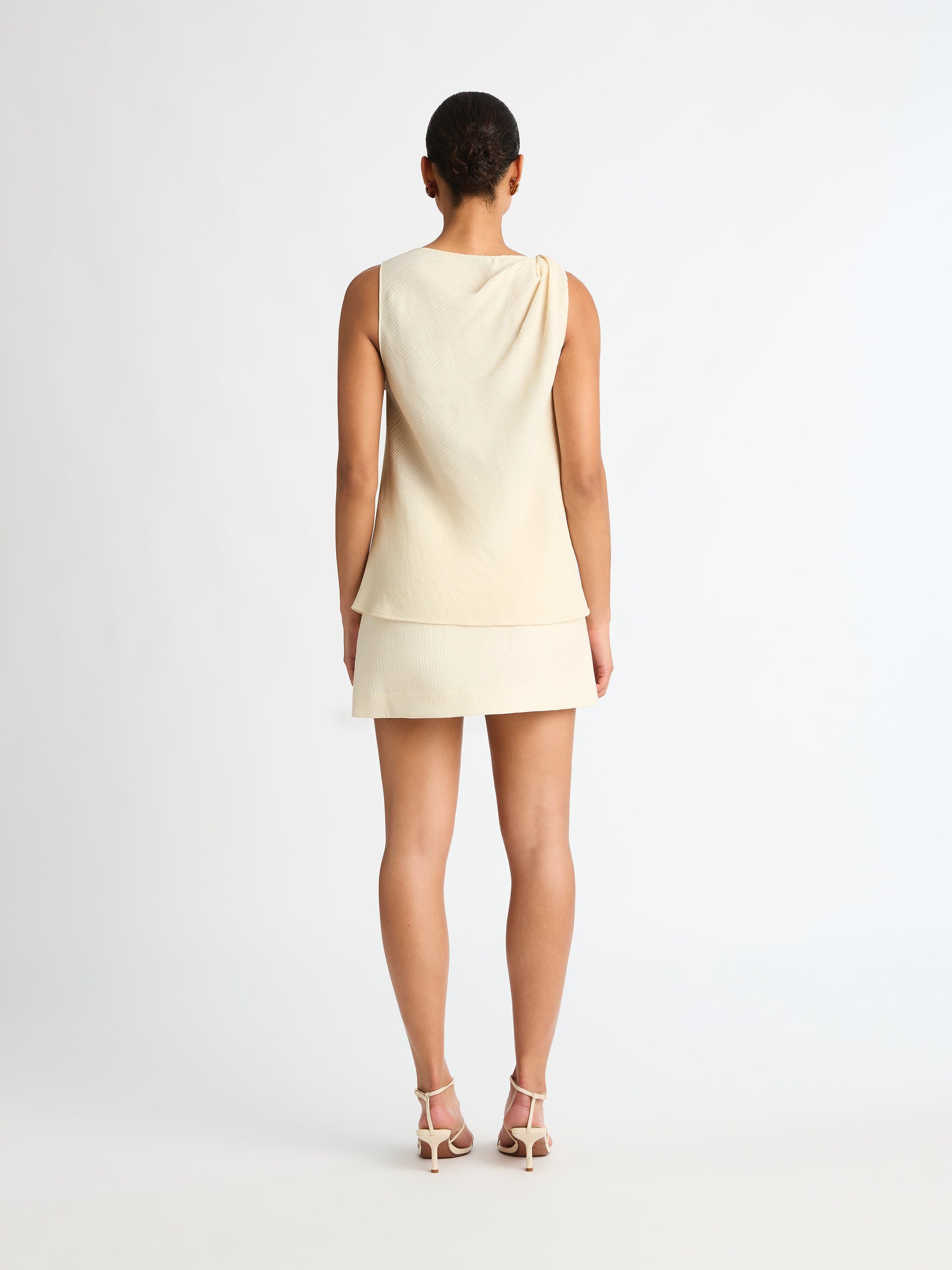 Effortlessly elevate your wardrobe with this staple classic. Introducing our Sandy Top - showcasing a woven textured fabrication, asymmetrical neckline and slim fit styling. Pair back with the Marnie Skort for the perfect summer look.