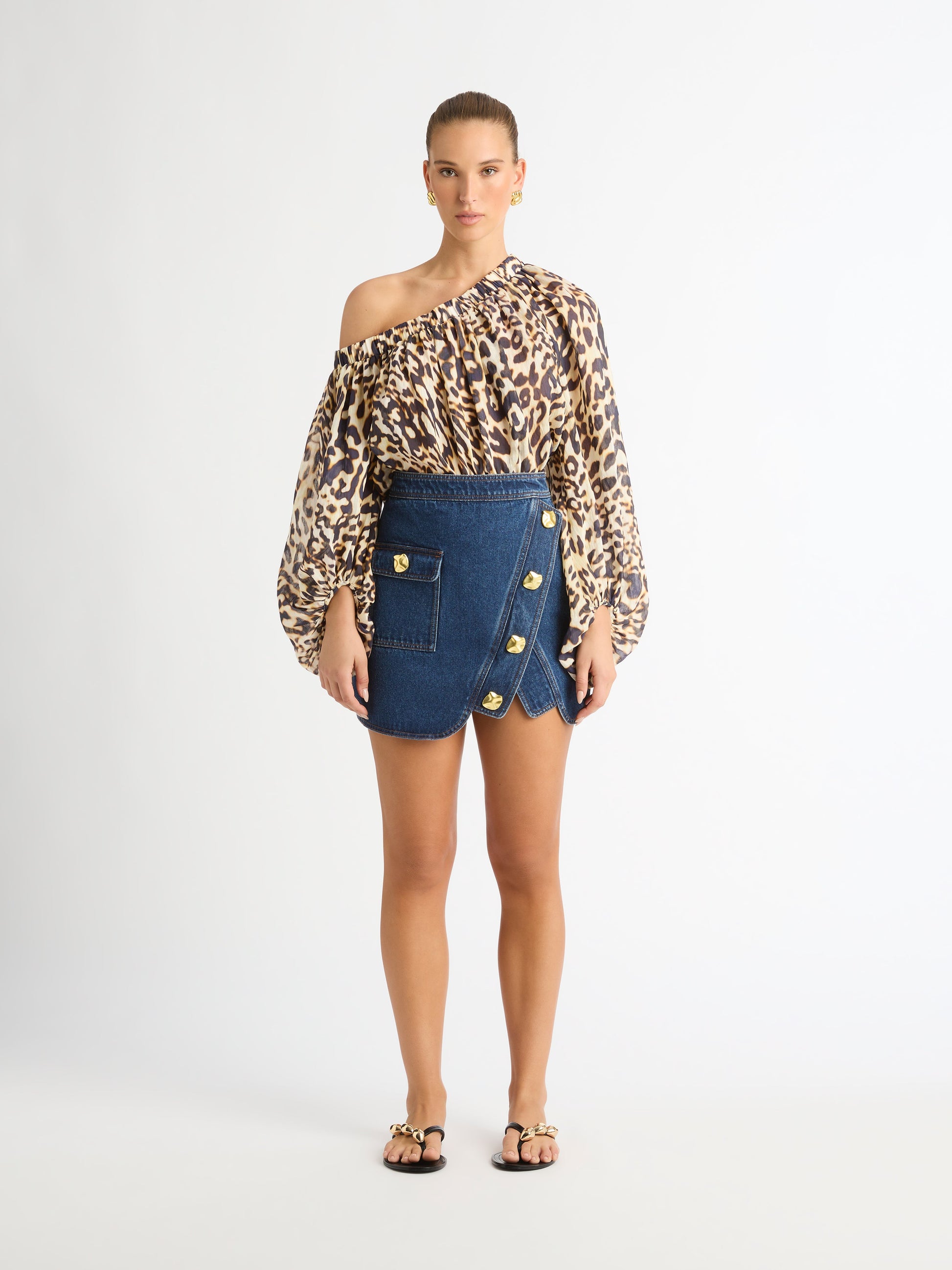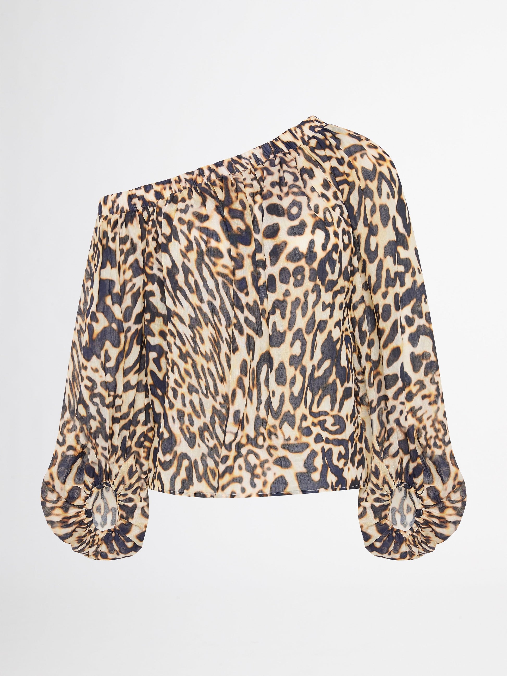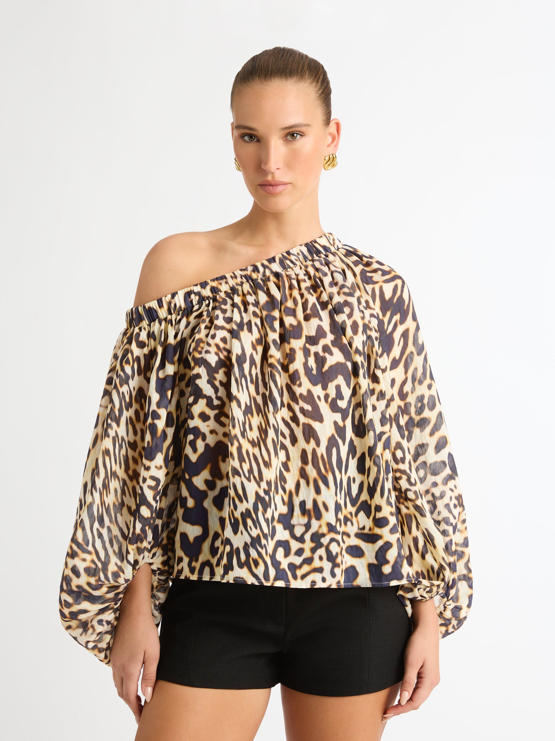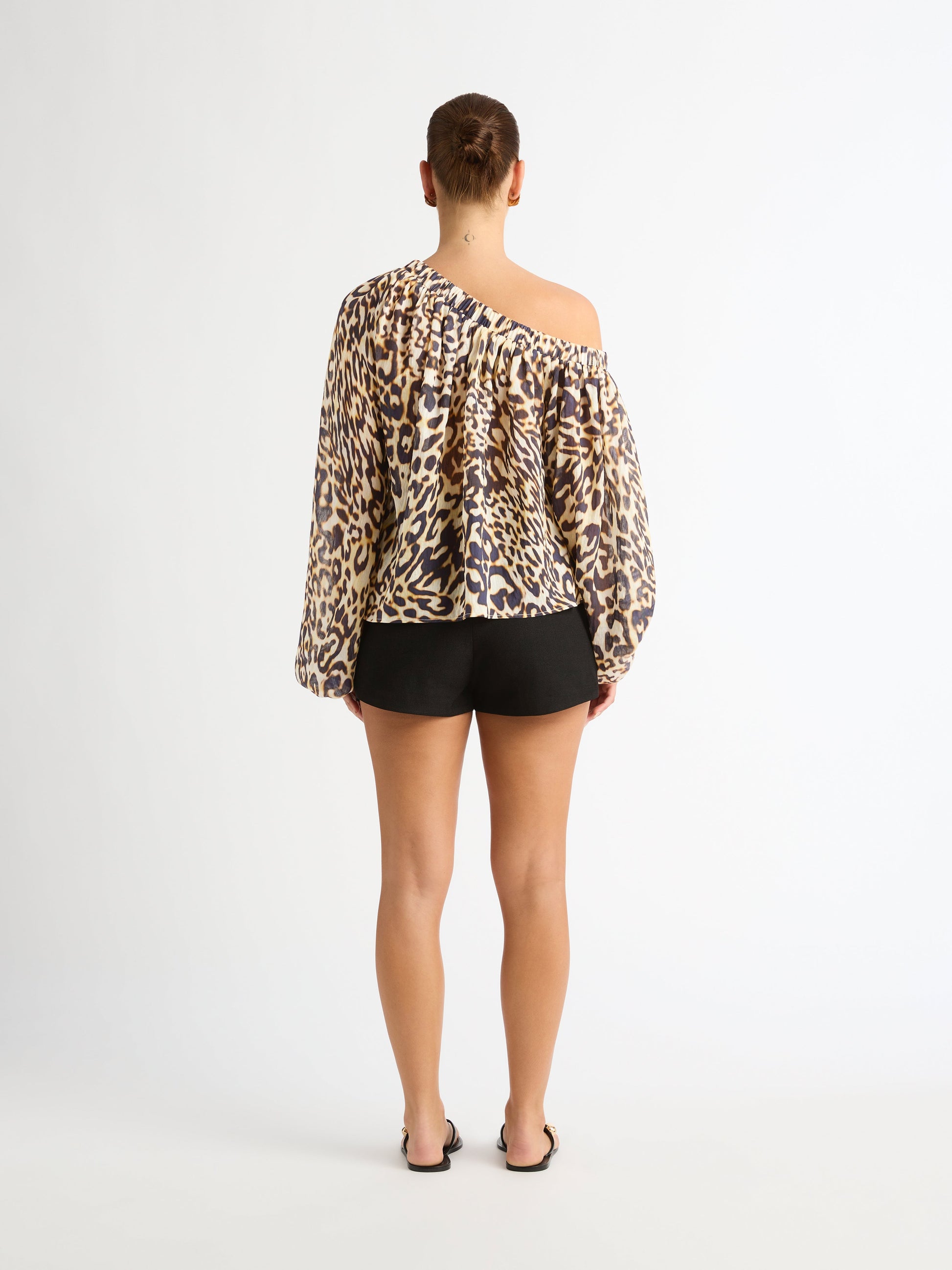 Tap in to your wild side with the Savannah Blouse! Showcasing a leopard print woven fabrication, relaxed oversized styling, asymmetric elasticated neckline and one long sleeve. Style with our Kiss and Tell Shorts to complete the look.