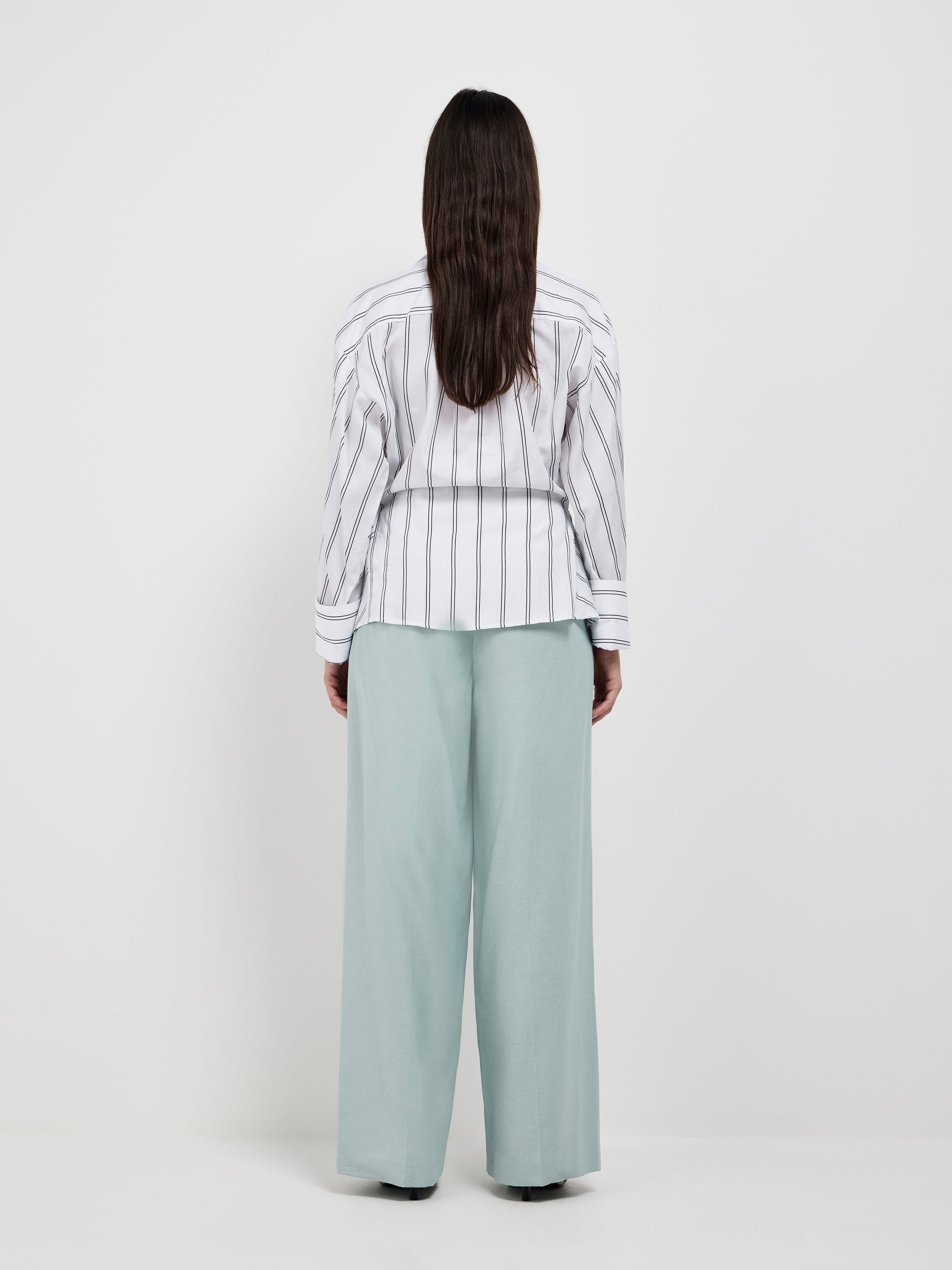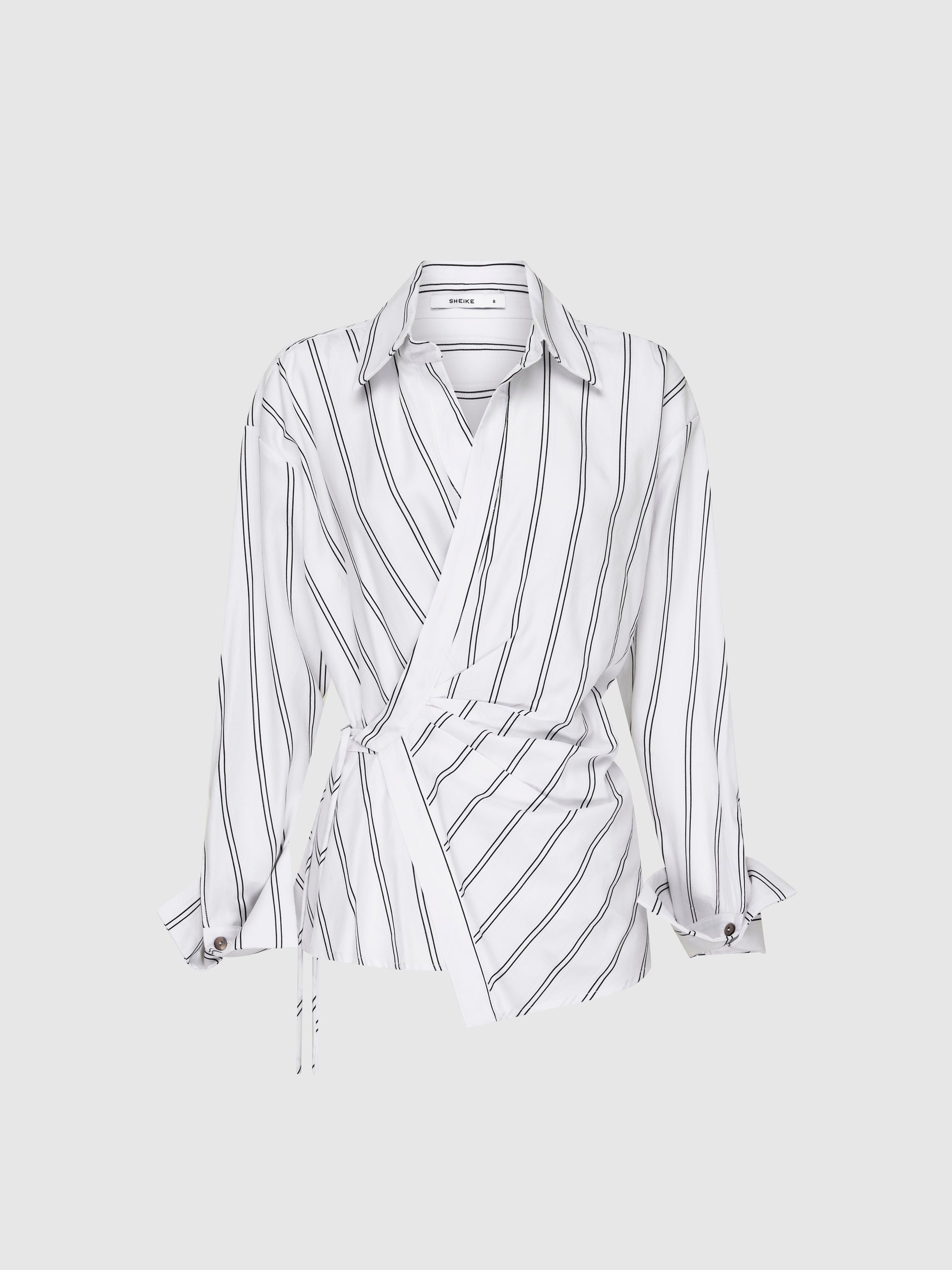 Classic stripes meet effortless silhouettes. Introducing the Teresa Shirt - showcasing stripe woven fabrication, slim wrap style fit, collared neckline, long sleeves and asymmetrical hemline. Pair with our Soho Pants to complete the look.