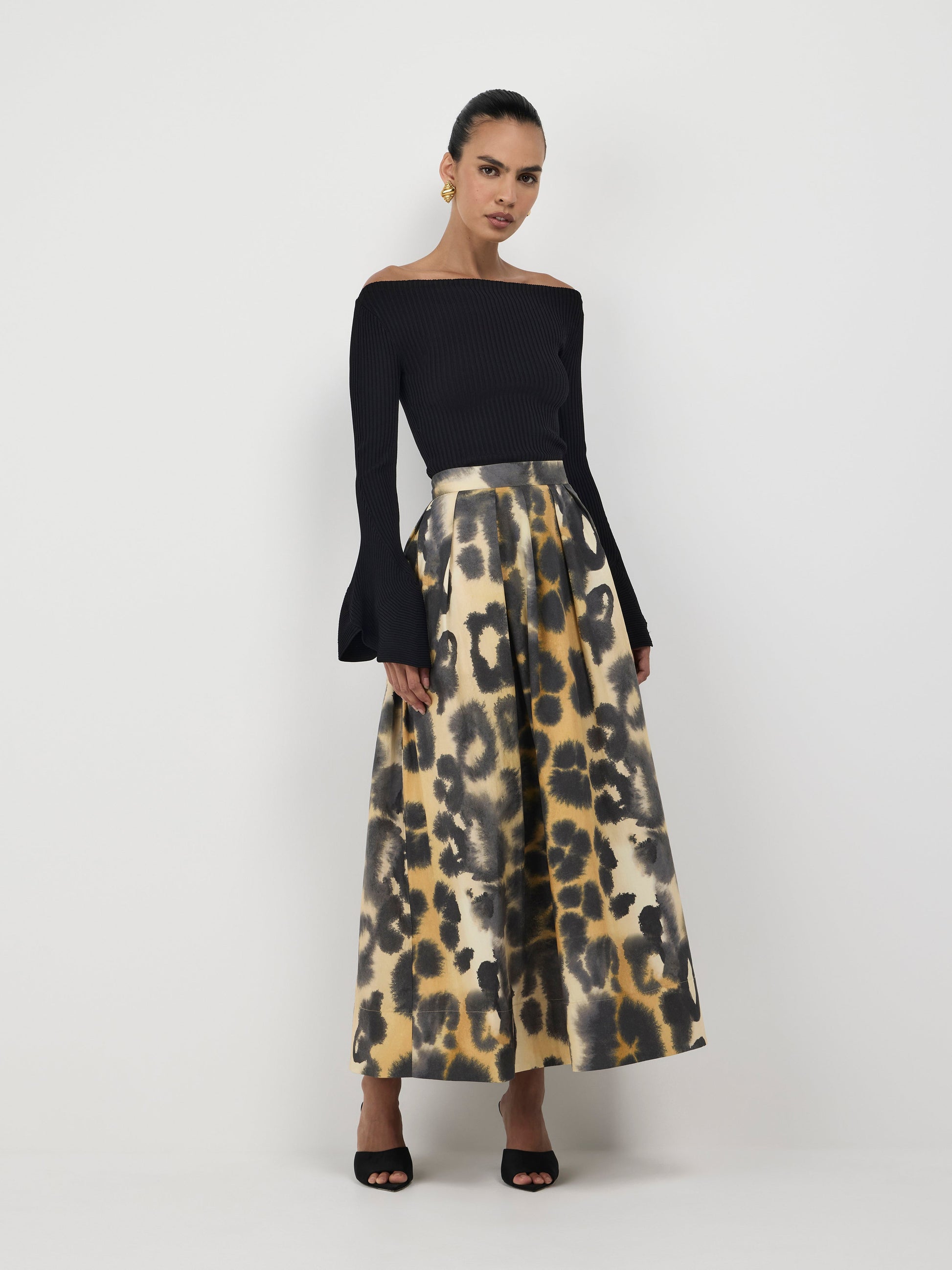 - Fitted long sleeves with flared hem